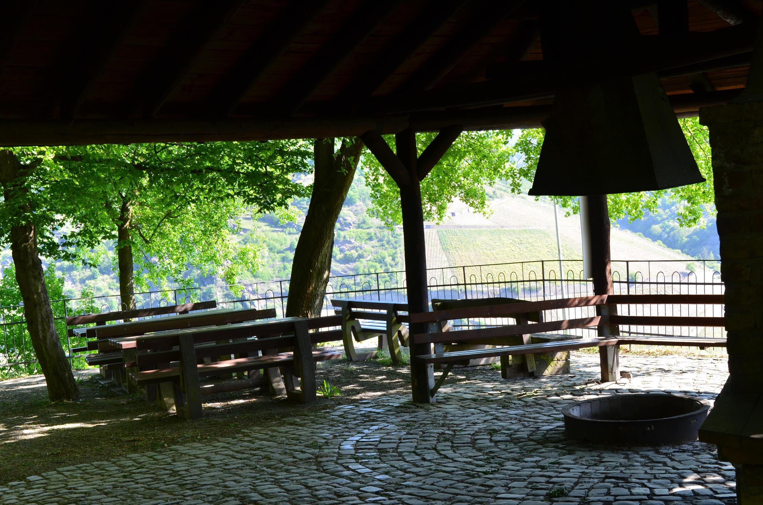 Wunderbarer Rastplatz mit vielen Sitzmöglicheiten, Tischen und überdachtem Pavillion, Grandioser Blick auf den Rhein, Burg Gutenfels mit Kaub und Burg Pfalzgrafenstein im Rhein. Am Rhein-Burgen-Wanderweg und Traumschleifchen "Pfalzblick" gelegen. Kein Grillen möglich!