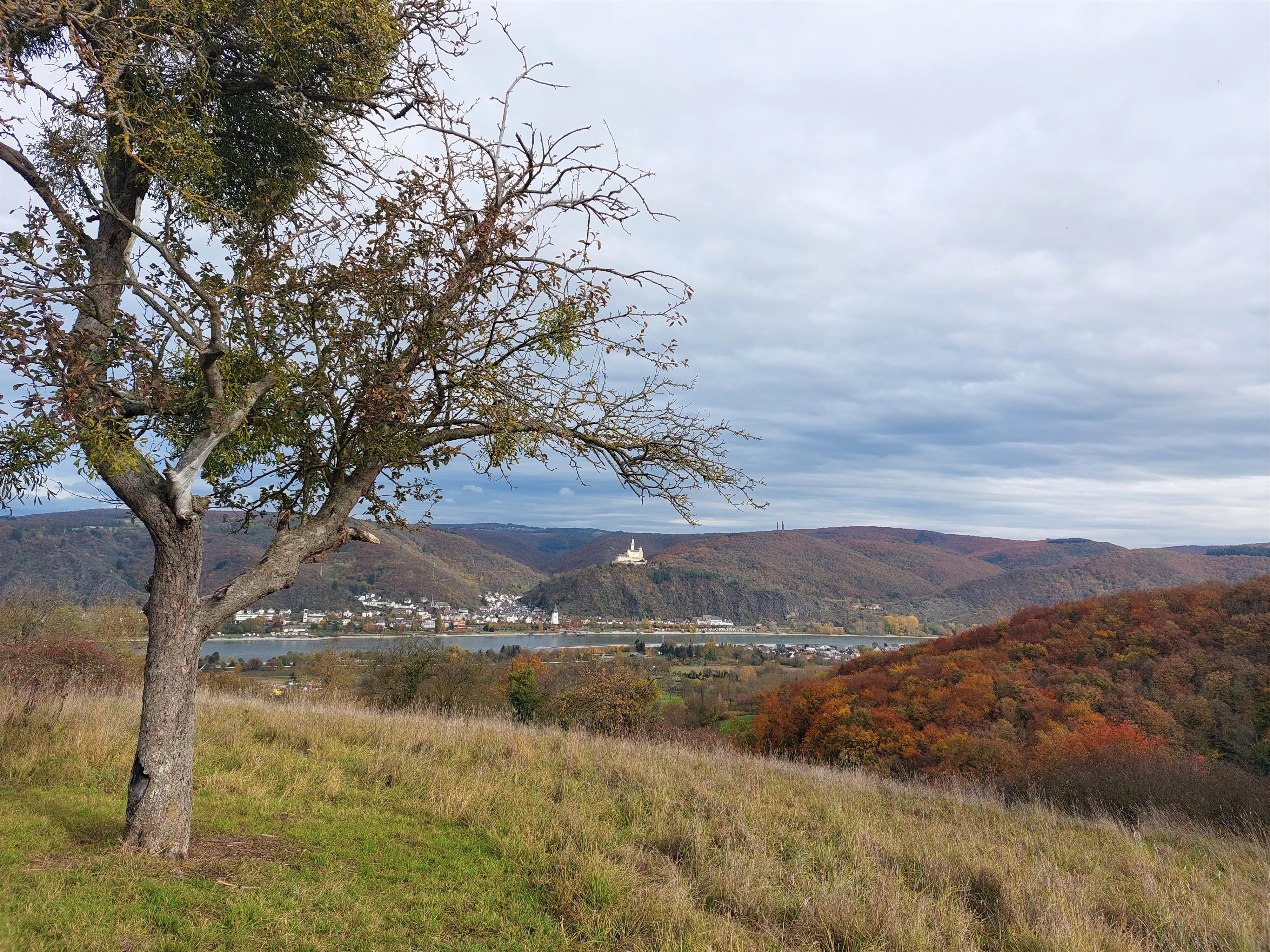 Aussichtspunkt mit Blick in das Rheintal und auf die Marksburg.