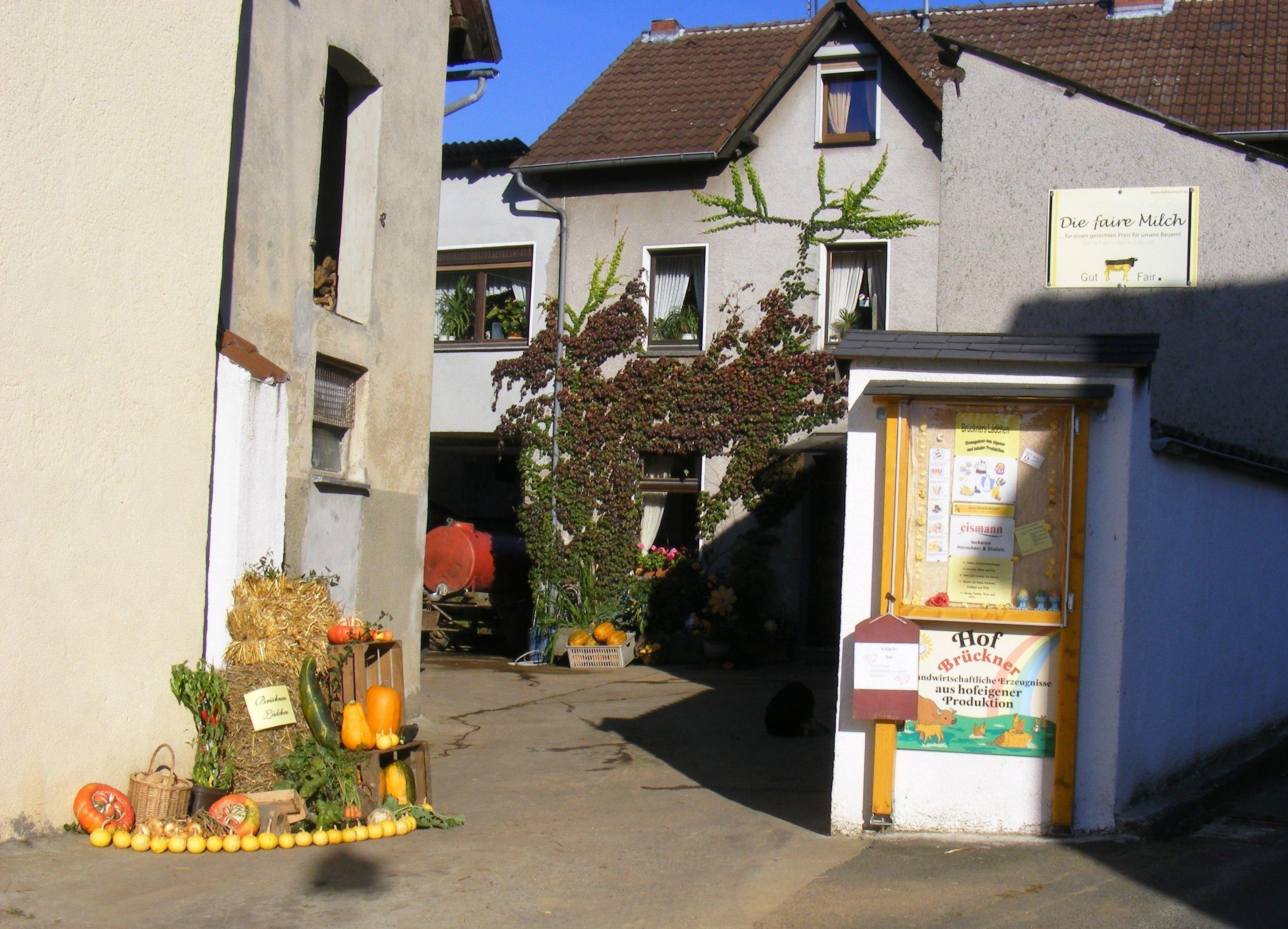 Der Biohof Brückner mit „Brückners Lädchen“ ist zertifiziert mit „Einkaufen auf dem Bauernhof“ und ab dem Jahr 2020 ein anerkannter Bio-Betrieb nach DE-ÖKO-006. Das Thema Naturschutz ist der Familie Brückner sehr wichtig. Aus dem Perma-Kulturgarten bietet der Hof verschiedene Gemüsesorten an, sowie 20 verschiedene Tomatensorten. Die Limousin-Rinder und die Schafe stehen vom Frühjahr bis zum Herbst auf saftigen grünen Wiesen. Artgerechte Tierhaltung, kurzer Weg zur Schlachtung, längere Reifezeit vom Fleisch garantieren beste Qualität. Als Ergänzung dazu wird Selbstgemachtes wie Fruchtaufstriche, Säfte, Deftiges wie eingelegte Gurken und Tomaten und Zucchini-Chili, sowie selbstgemachte Chilies angeboten. Ebenso Eier von den eigenen Hühnern, Fleisch vom Schwäbisch-Hällischem Landschwein und leckere Hähnchen.