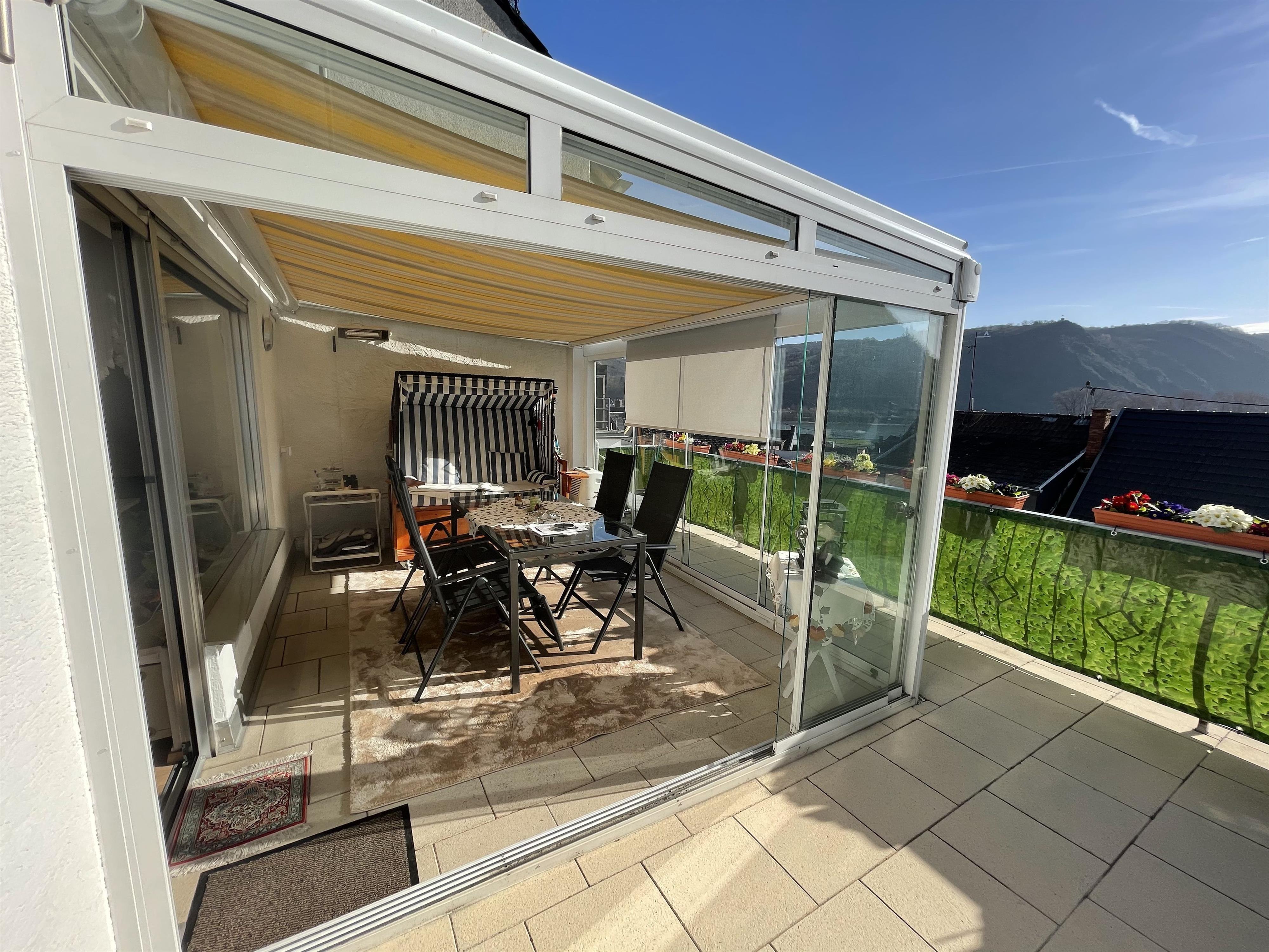 Ca. 95qm großes komfortabel eingerichtetes Nichtraucher-Ferienhaus  über zwei Etagen(Rauchen ist weder im Haus noch auf der Terrasse erlaubt), Lifter, Wintergarten/Terrasse, mit Blick auf den Rhein, die untere Etage hat ein großes Bad mit ebenerdiger Dusche, WC, Bidet, Waschmaschine und Trockner, ein großes Schlafzimmer mit Boxspringbett und Smart-TV, sowie ein kleines Zimmer mit einem Einzelbett und Smart-TV.