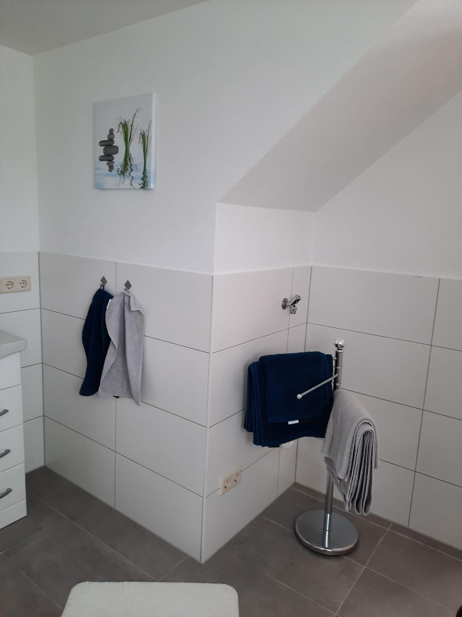 Im Erdgeschoss befindet sich das neu renovierte Bad mit Dusche und eine Abstellkammer. Im Obergeschoss der Wohnung befindet sich das Wohnzimmer mit einer Essecke, eine voll ausgestattete Küche, sowie ein Schlafzimmer mit Doppelbett. Im Wohnzimmer kann im Bedarfsfall die Couch zum 3. Schlafplatz ausgezogen werden. Ein Flachbildfernseher mit Satellitenempfang gehört zu Ausstattung des Wohnzimmers.