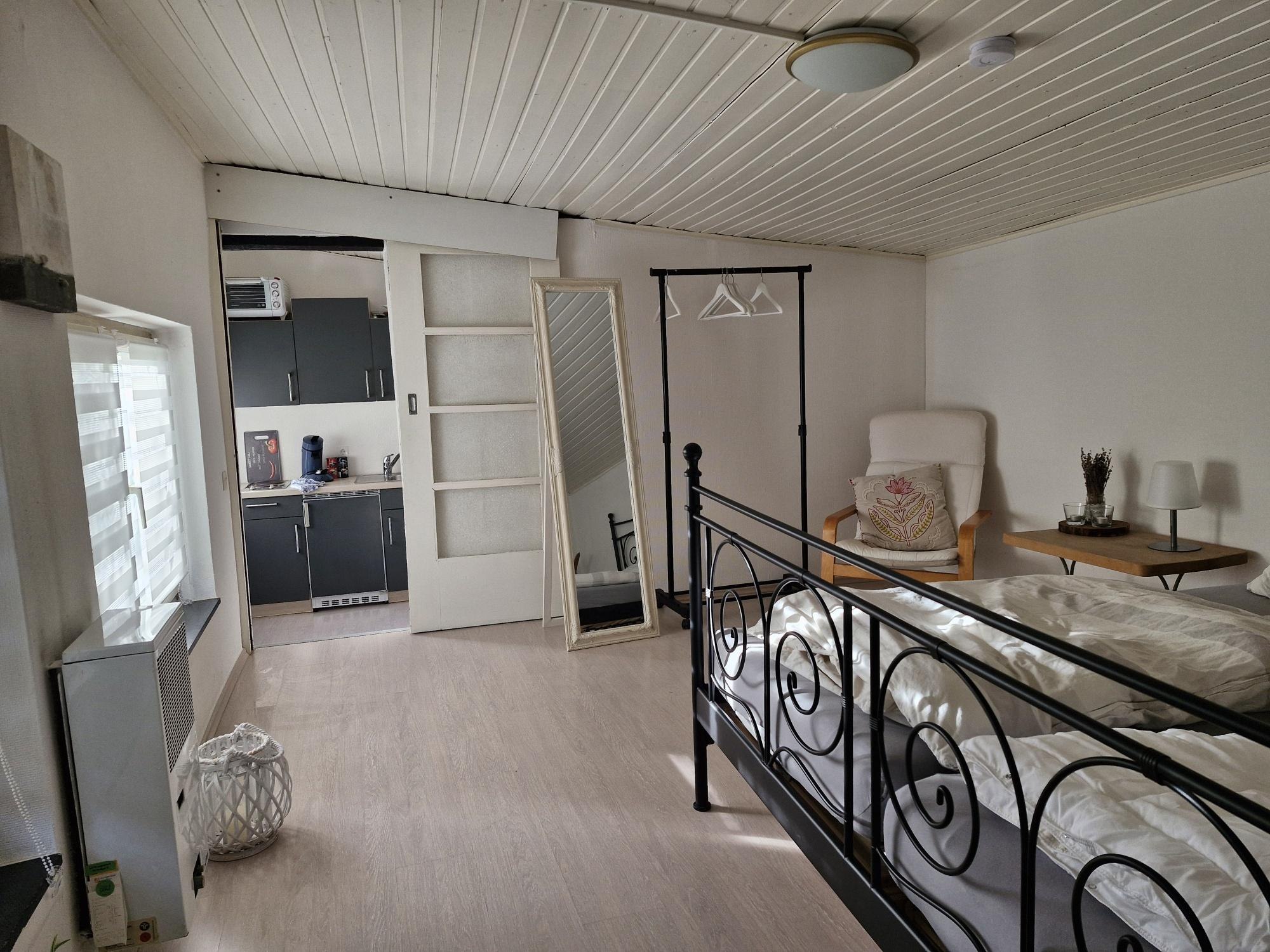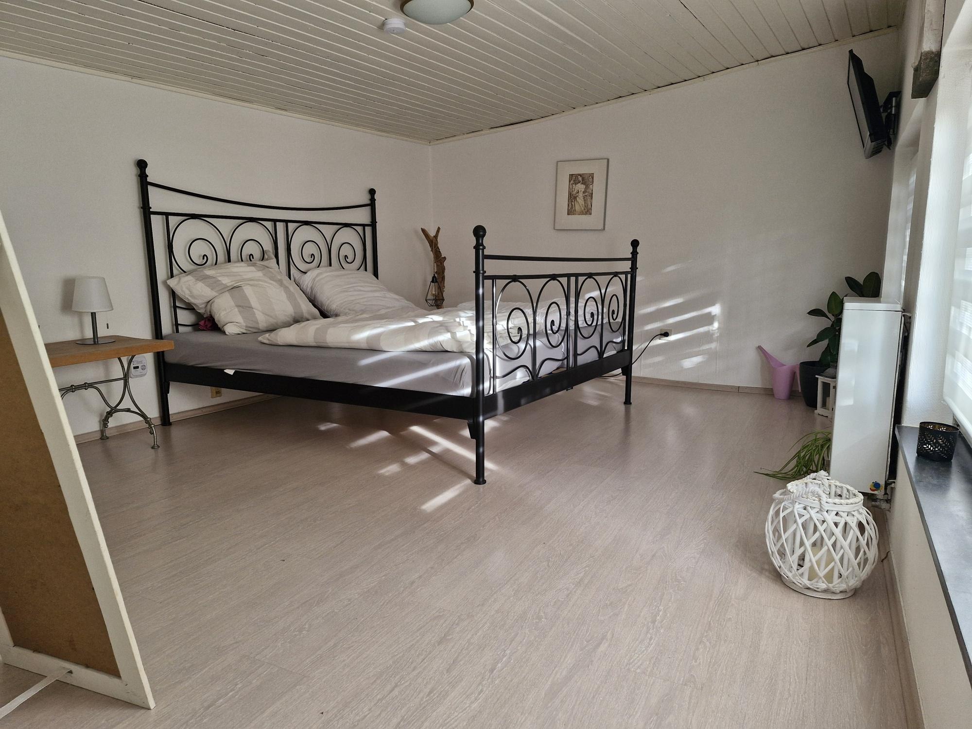 Das Schlafzimmer besitzt ein großes Doppelbett 180x200cm mit getrennten Matratzen. Auf Wunsch kann gerne eine Kinderreisebett zur Verfügung gestellt werden. Frische Bettwäsche ist enthalten.