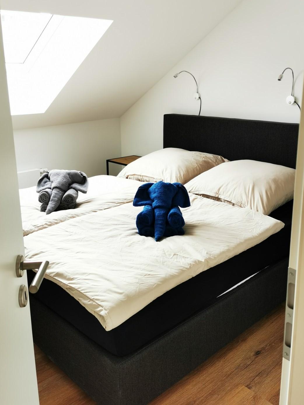 Doppelbett (160x200cm) + Gäste-Schlafcouch (140x200 cm) + Kinderbettchen. Bad m. Dusche/WC/Urinal (Fön und Hygieneartikel). Schreibtisch Sitzgelegenheit Telefon (auf Wunsch mit eigener Telefonnummer - nur Festnetz). Smart TV mit Magenta TV, Amazon Prime und Waipu. W-LAN und LAN-Anschlüsse (150 mbit/s).