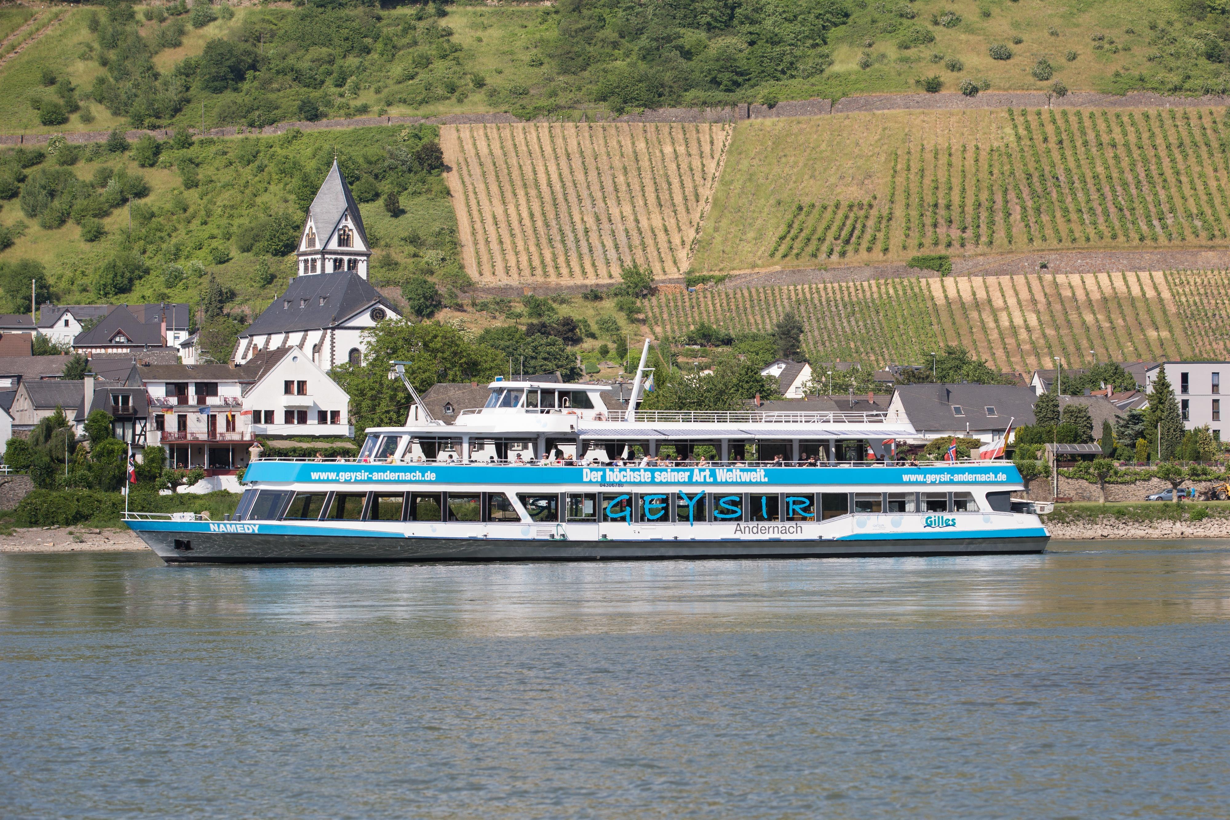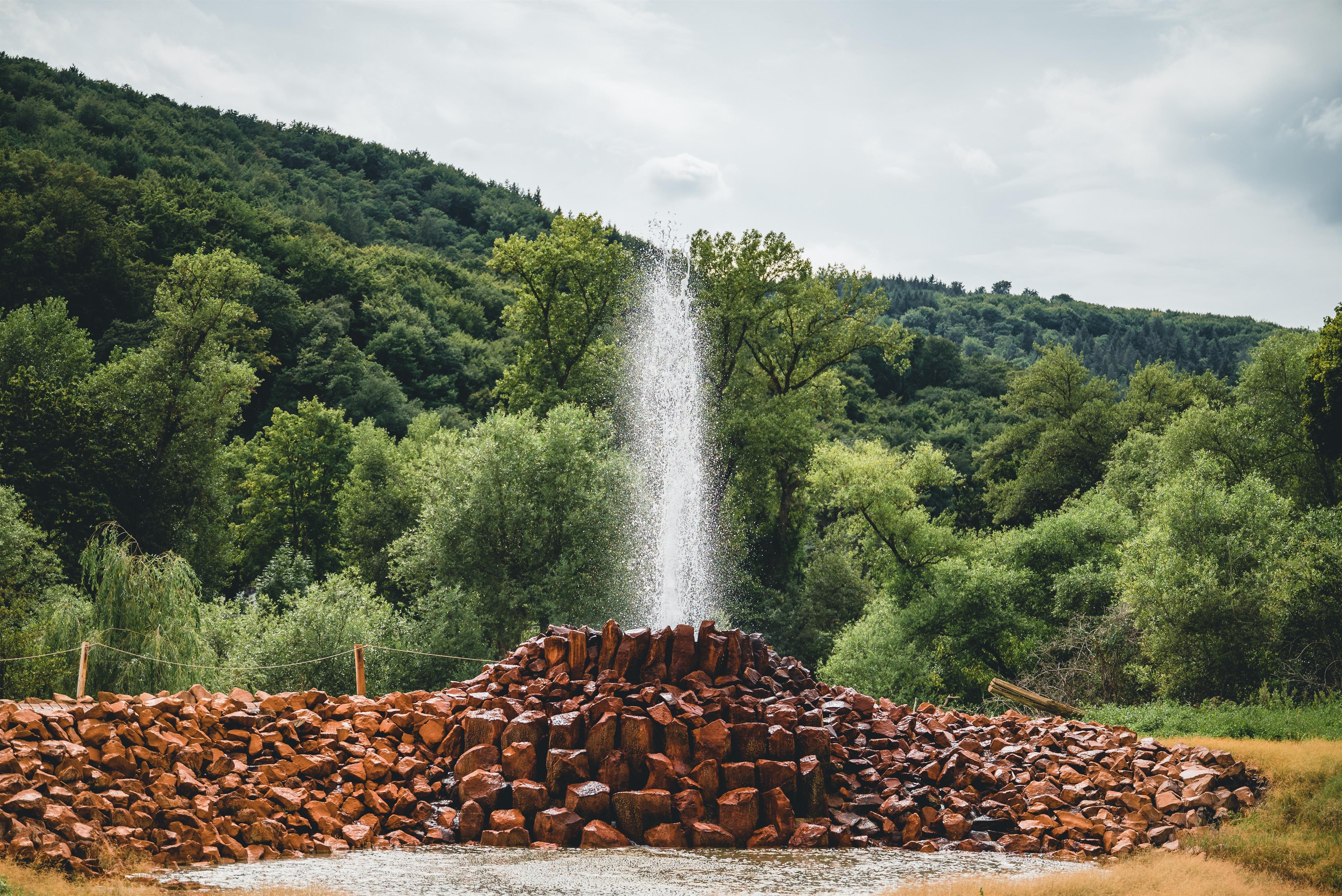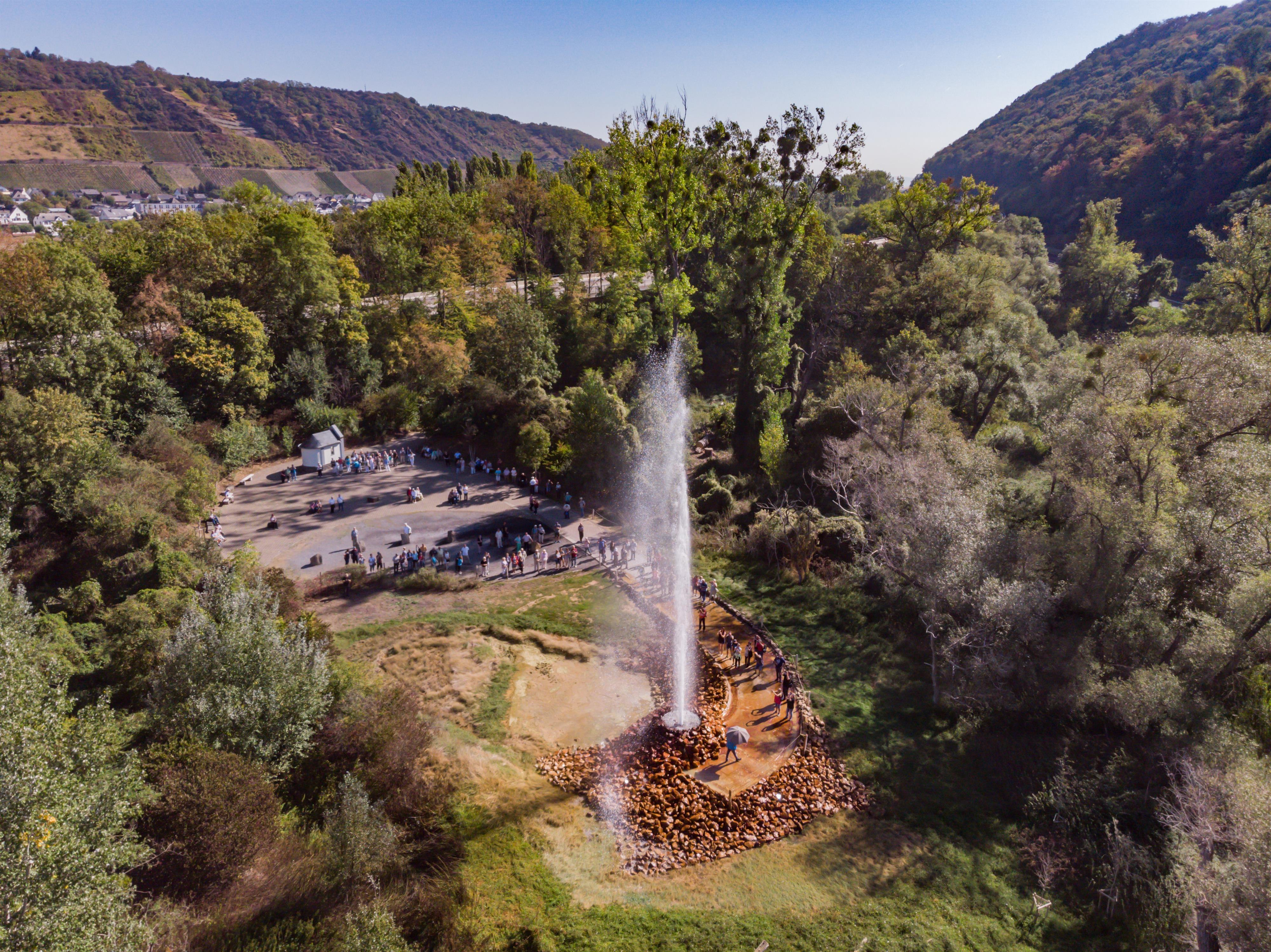 Eine geologische Sensation ist der weltgrößte Kaltwasser-Geysir, ein einmaliges Naturschauspiel, welches seines gleichen sucht. Nicht weit von Andernach entfernt, entspringt der Geysir im Namedyer Werth. Anders als bei den Heißwasser-Geysiren, die das Wasser durch den Dampfdruck von überhitztem Wasser herausschleudern, wirkt bei diesem Kaltwasser-Geysir die Kohlensäure als treibende Kraft. Seinen Ursprung hat er in der regen vulkanischen Geschichte der Landschaft. Die Eifel mit ihren Maaren und erloschenen Vulkankegeln beginnt gleich im Hinterland.