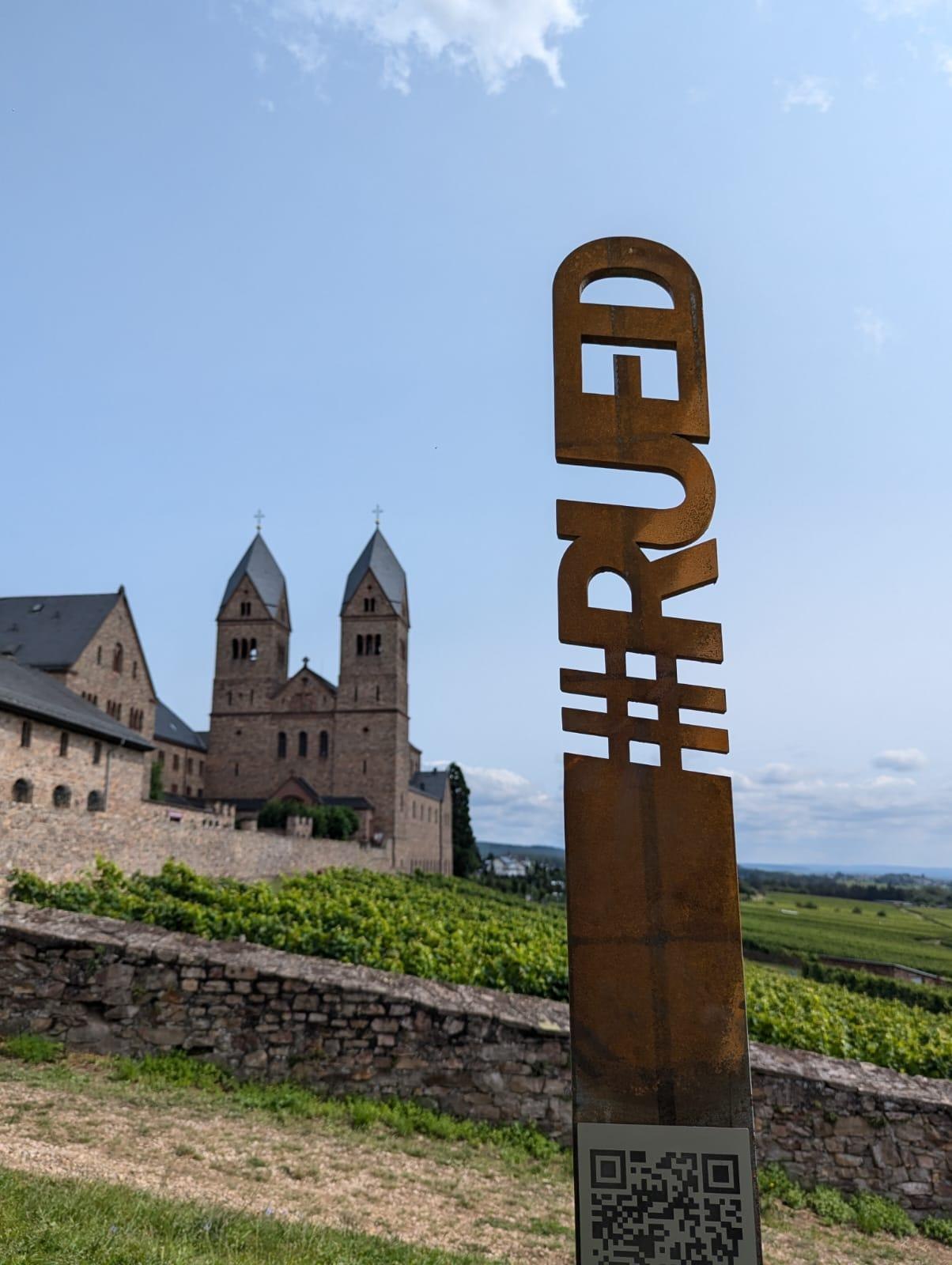 Fotostele mit Blickrichtung zur Abtei St. Hildegard