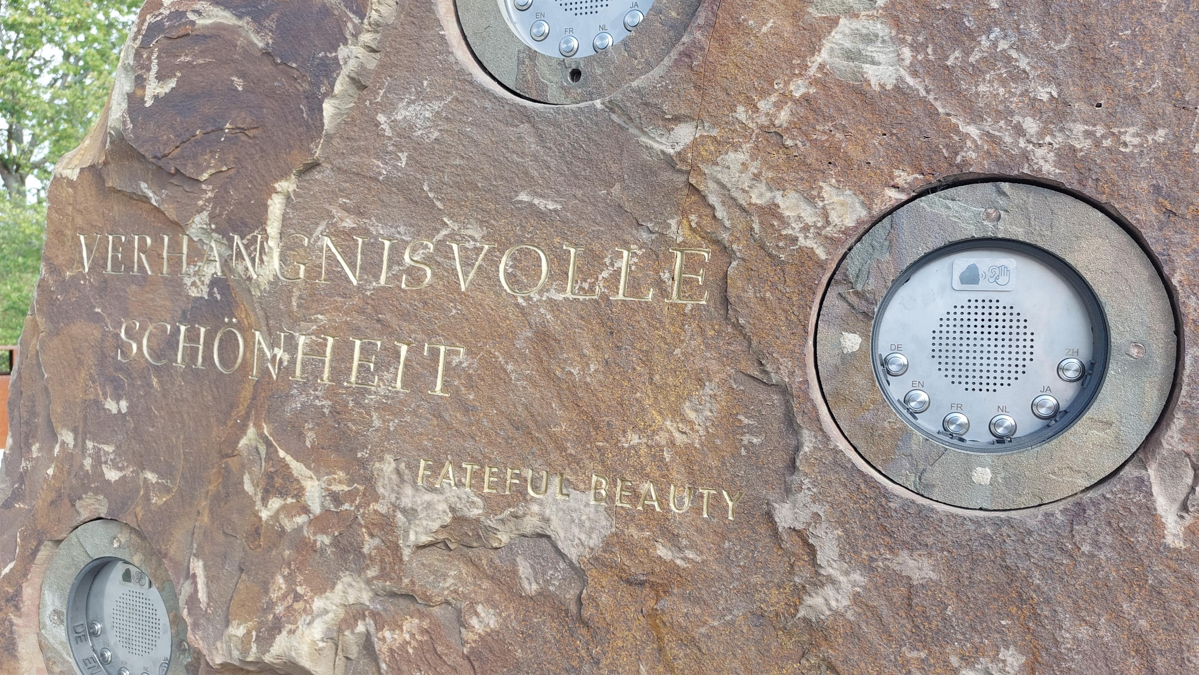Vier „sprechende“ Felsen erzählen in sechs Sprachen spannende Geschichten zum Geist des Ortes. Geht dicht an den Felsen heran und lauscht den verschiedenen Stimmen.