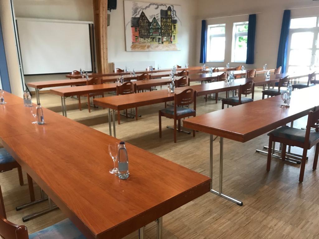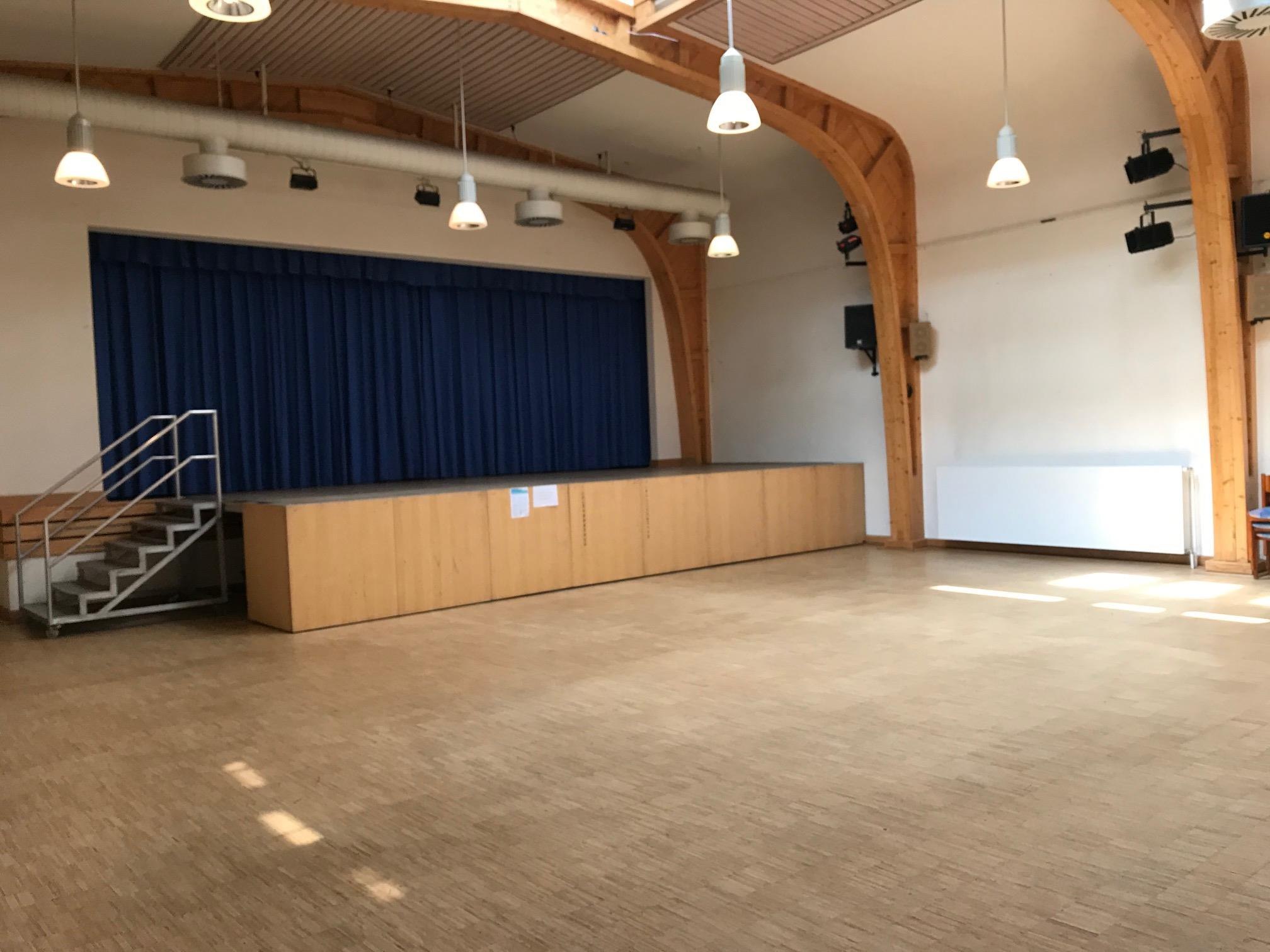 Der Saal ist durch eine Trennwand teilbar.