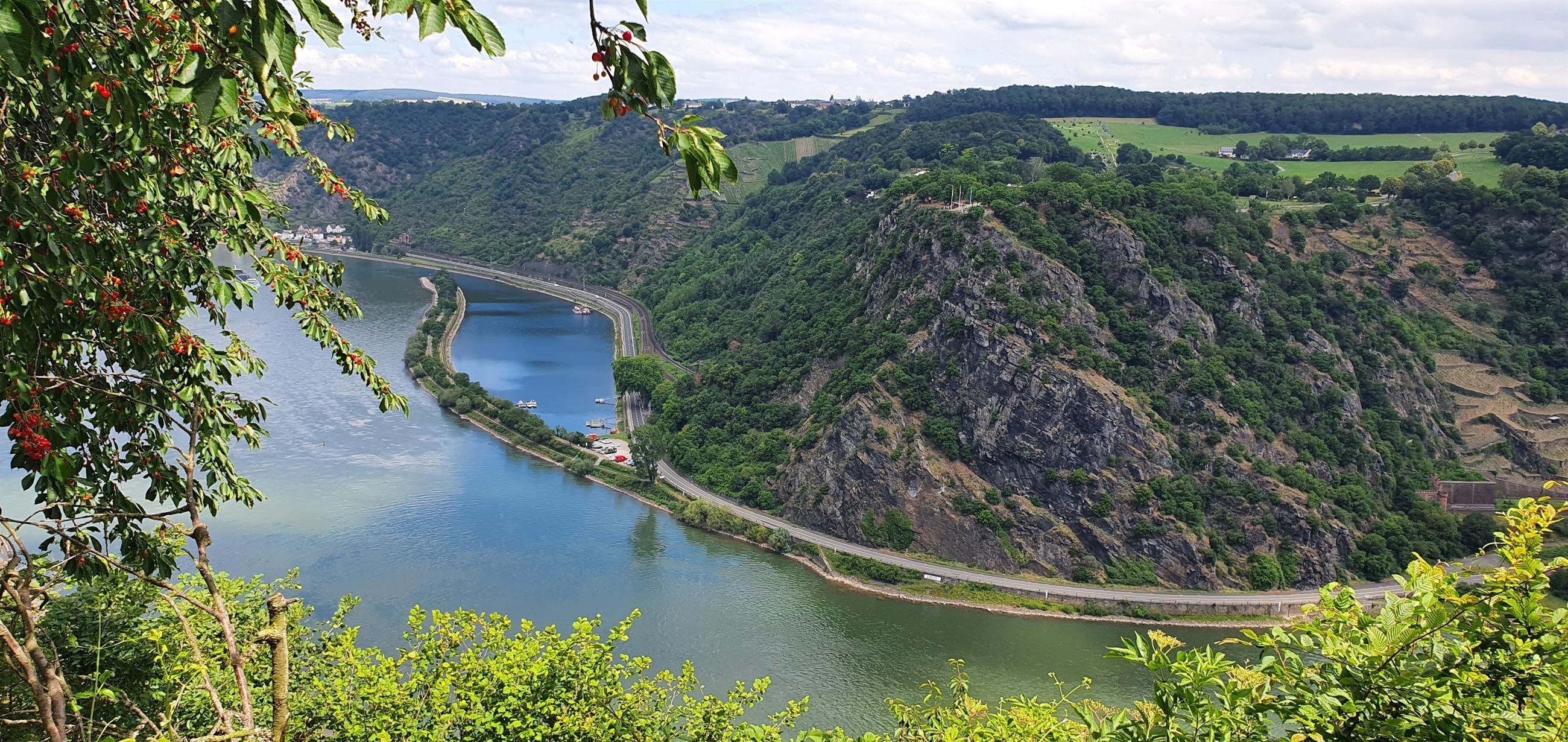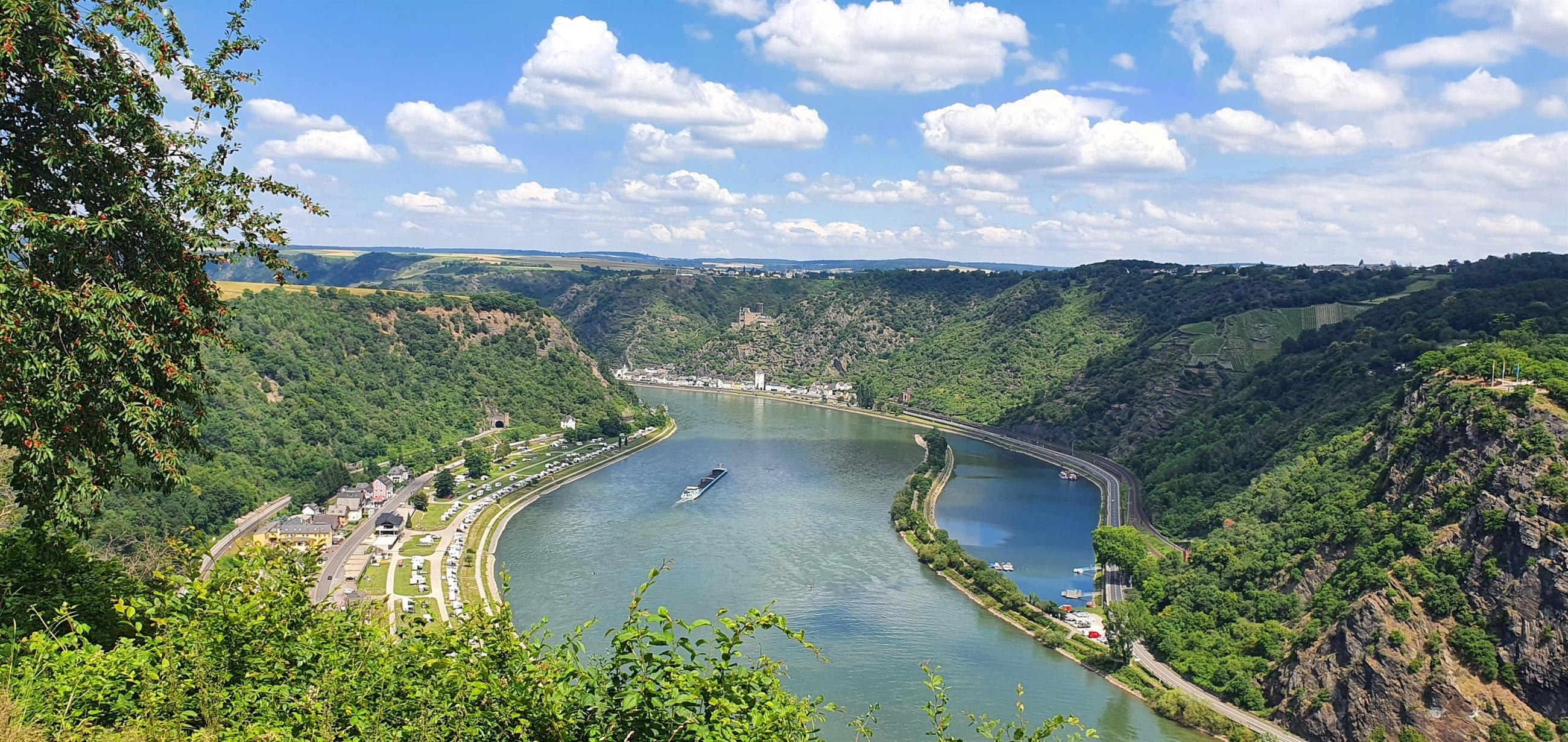Vom Urbarer Aussichtspunkt „Maria Ruh" genießt man einen unvergesslichen Blick auf den gegenüberliegenden sagenumwobenen Loreleyfelsen, tief hinab zur engsten Stelle des Rheines und weiter flussabwärts zu den Burgen Katz und Maus.