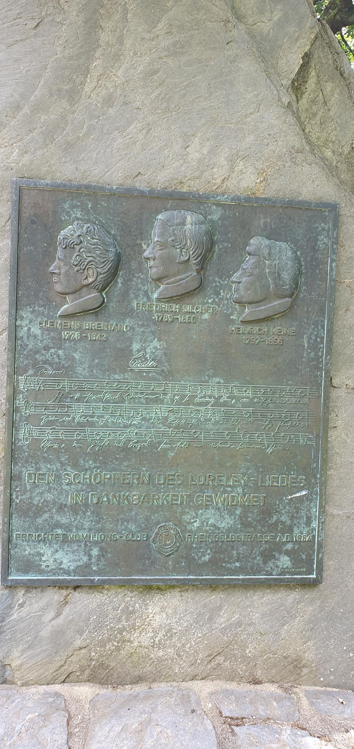 Auf Maria Ruh ist den Vätern des Loreleyliedes ein Denkmal gewidmet: Clemens Brentano, Heinrich Heine und Friedrich Silcher. Diese drei haben im 19. Jahrhundert die romantische Sehnsucht lokalisiert und ihr einen greifbaren Ort zugewiesen. Clemens Brentano schuf in seiner Ballade der "Lore Lay" eine Figur der Weltliteratur, Heinrich Heines Verse haben der Gestalt der Unglück bringenden Undine die endgültige Form gegeben und Friedrich Silcher fand für dieses Lied die einfühlsame und volksliedhafte Melodie.