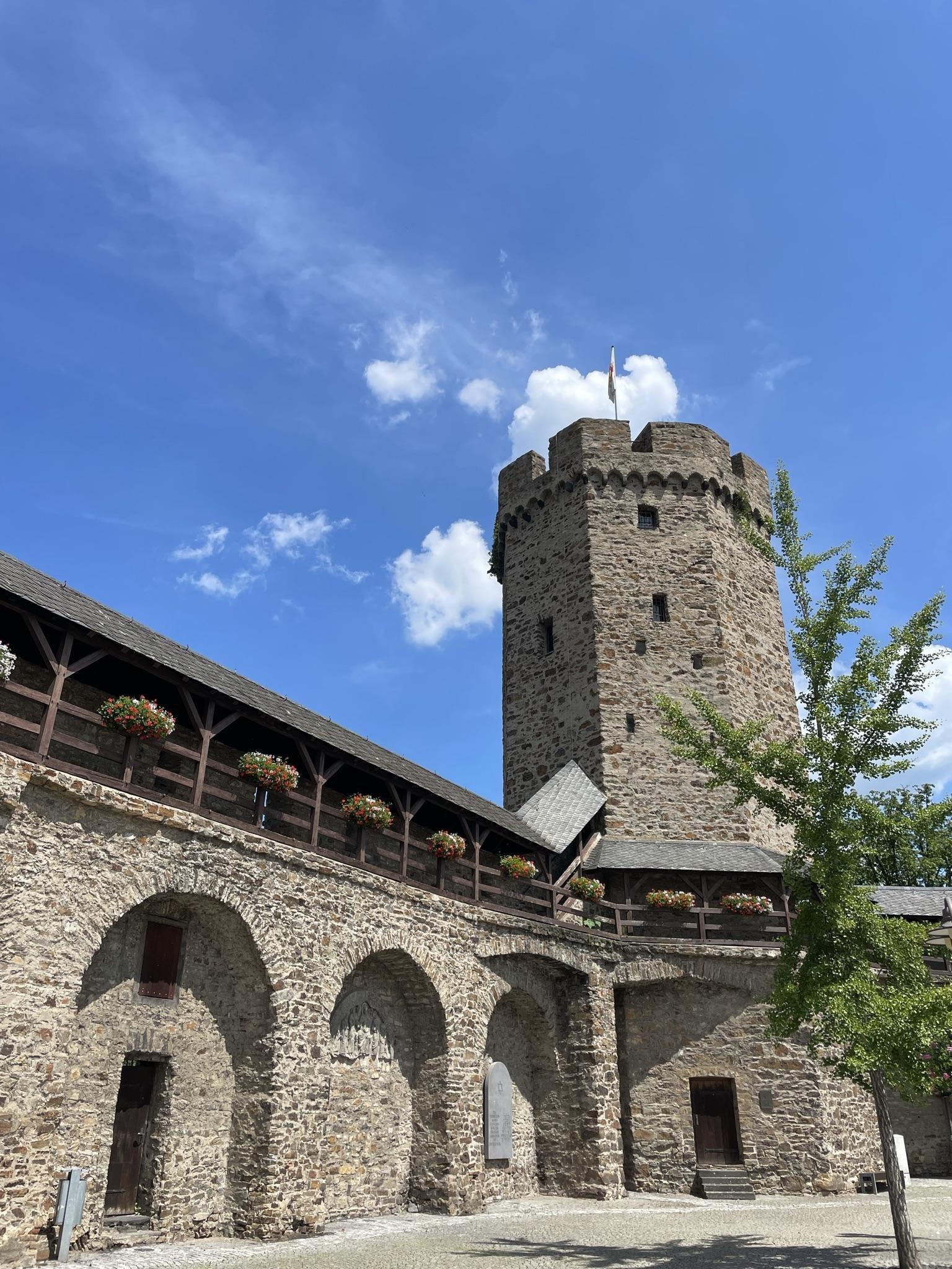 Von der Plattform in 26 m Höhe hat man einen herrlichen Blick über die Stadt Lahnstein und die rheinische Landschaft.