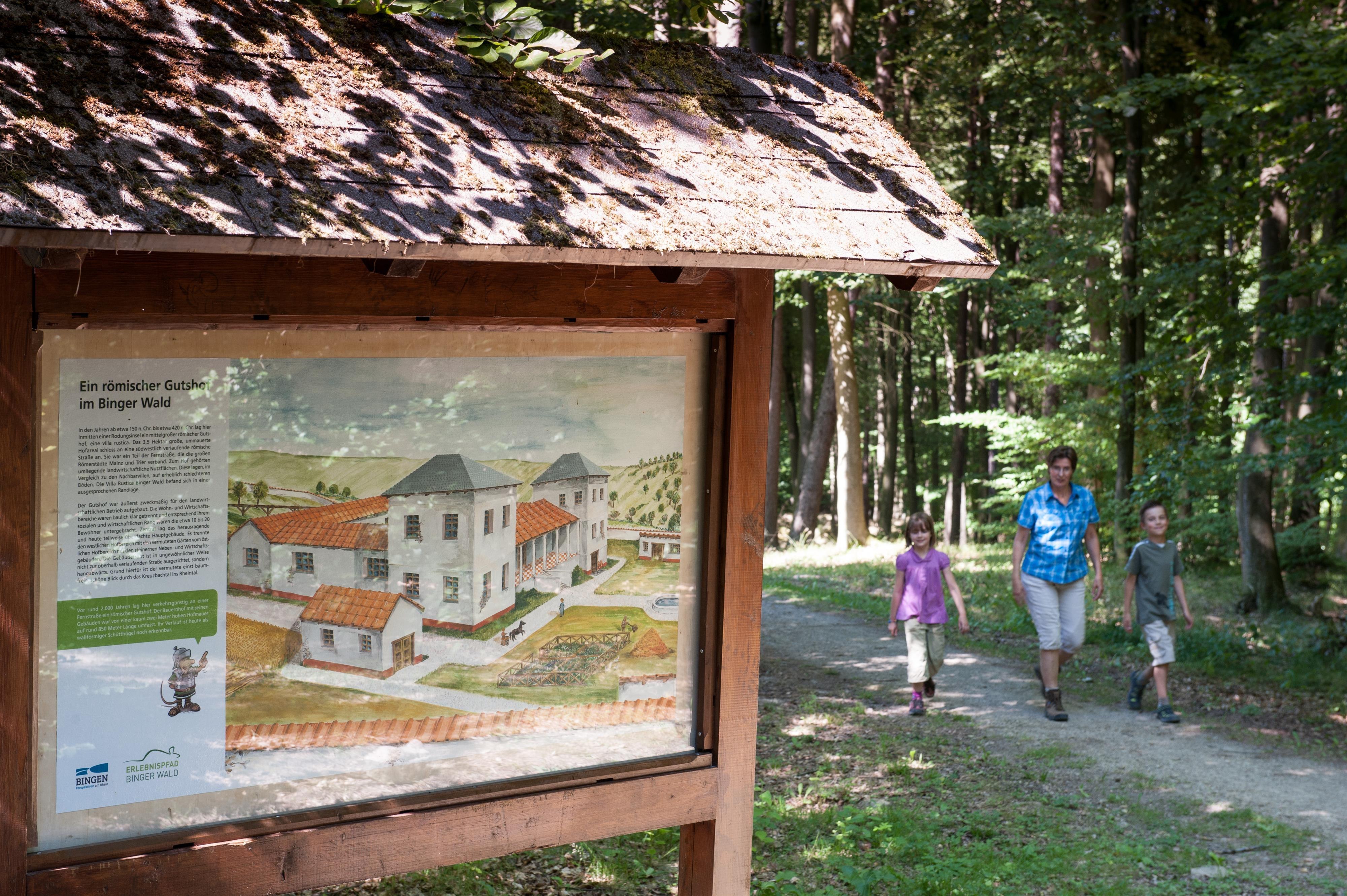 Die Villa Rustica liegt idyllisch inmitten des Binger Waldes. Freigelegte Mauern und diverse Steinschüttungen sind auf dem offenen Gelände zu bewundern. Römische Nutzgärten, römische Spiele und Infotafeln geben Einblicke in den damaligen Alltag und in die archäologische Arbeit. Die lebendige Ausgrabungsstätte offenbart rund ums Jahr neue Aspekte für Entdeckerinnen und Entdecker jeglichen Alters.