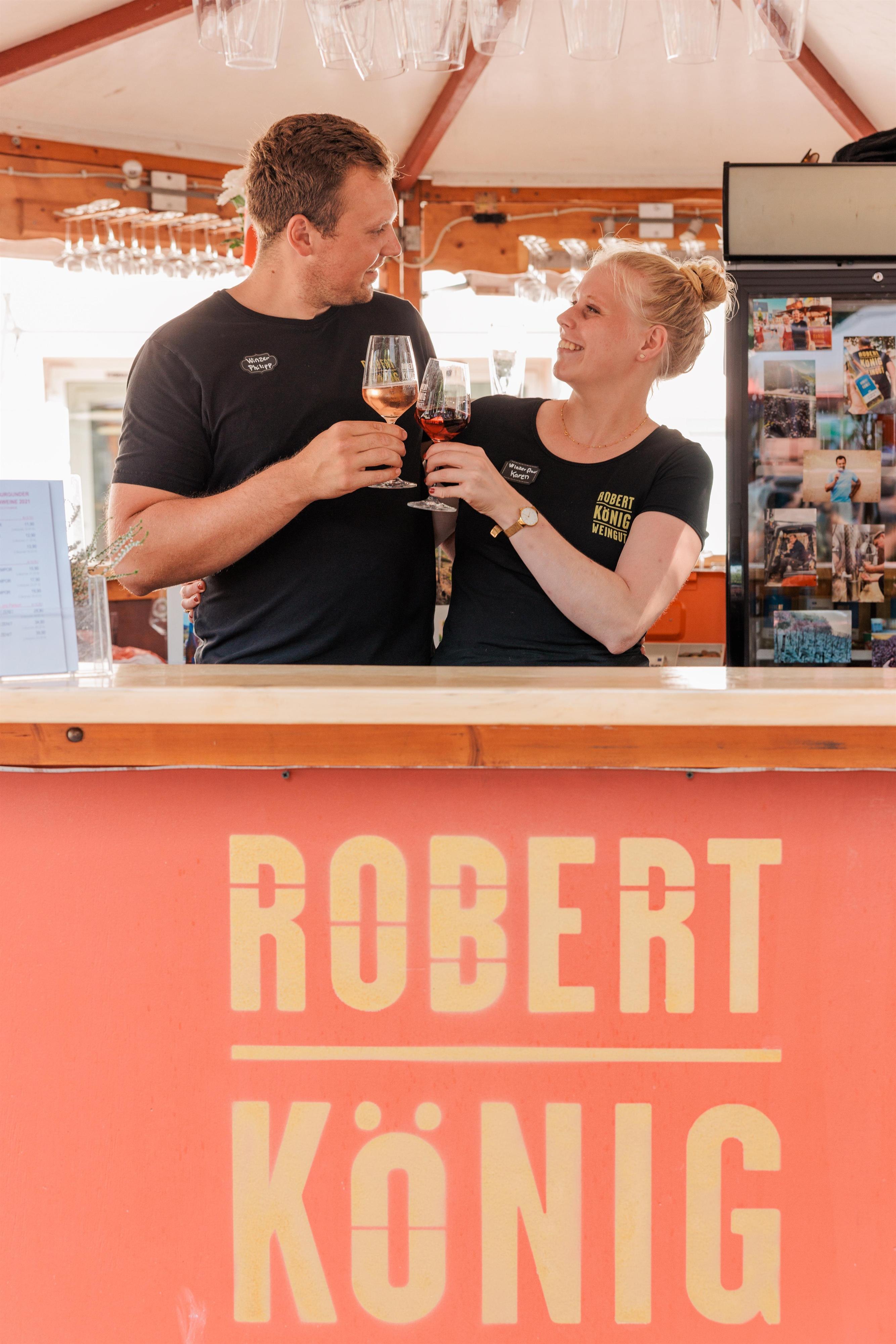 Philipp König leitet seit 2015 das Weingut und ist neben der Geschäftsführung für die Strategie, Weinbereitung, den Vertrieb, dn Außenbetrieb und die Repräsentation des Weingutes verantwortlich. Seit 2021 unterstützt ihn Karen Moeller, die dänische Partnerin von Philipp, im Vertrieb, der Repräsentation, de Weinbergen und den Veranstaltungen.
