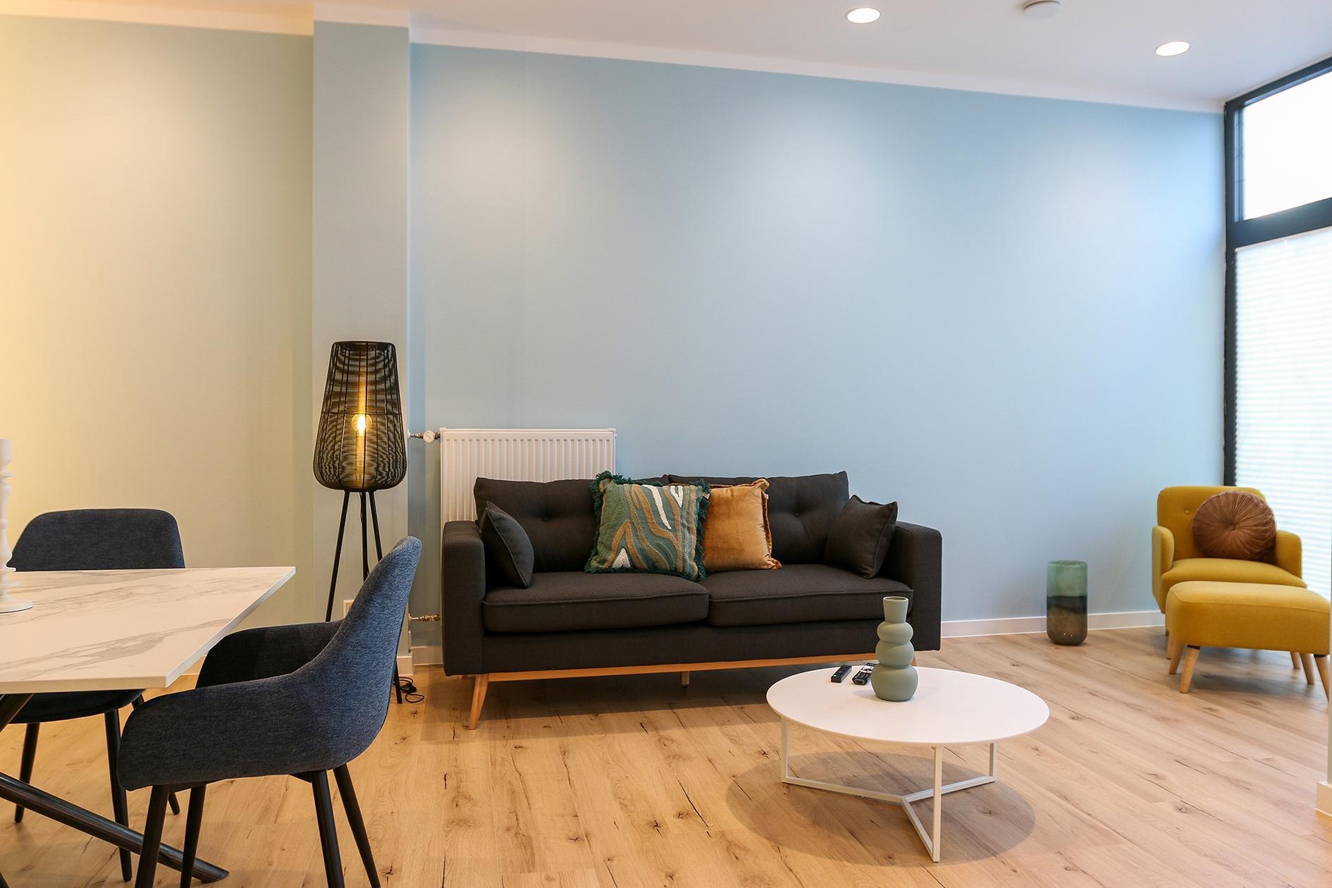 Of course, there is also a dining area for 4 people and a cozy seating area with a sofa and Smart TV with streaming options. Thanks to the free high-speed internet, the apartment is also excellent for working from home.