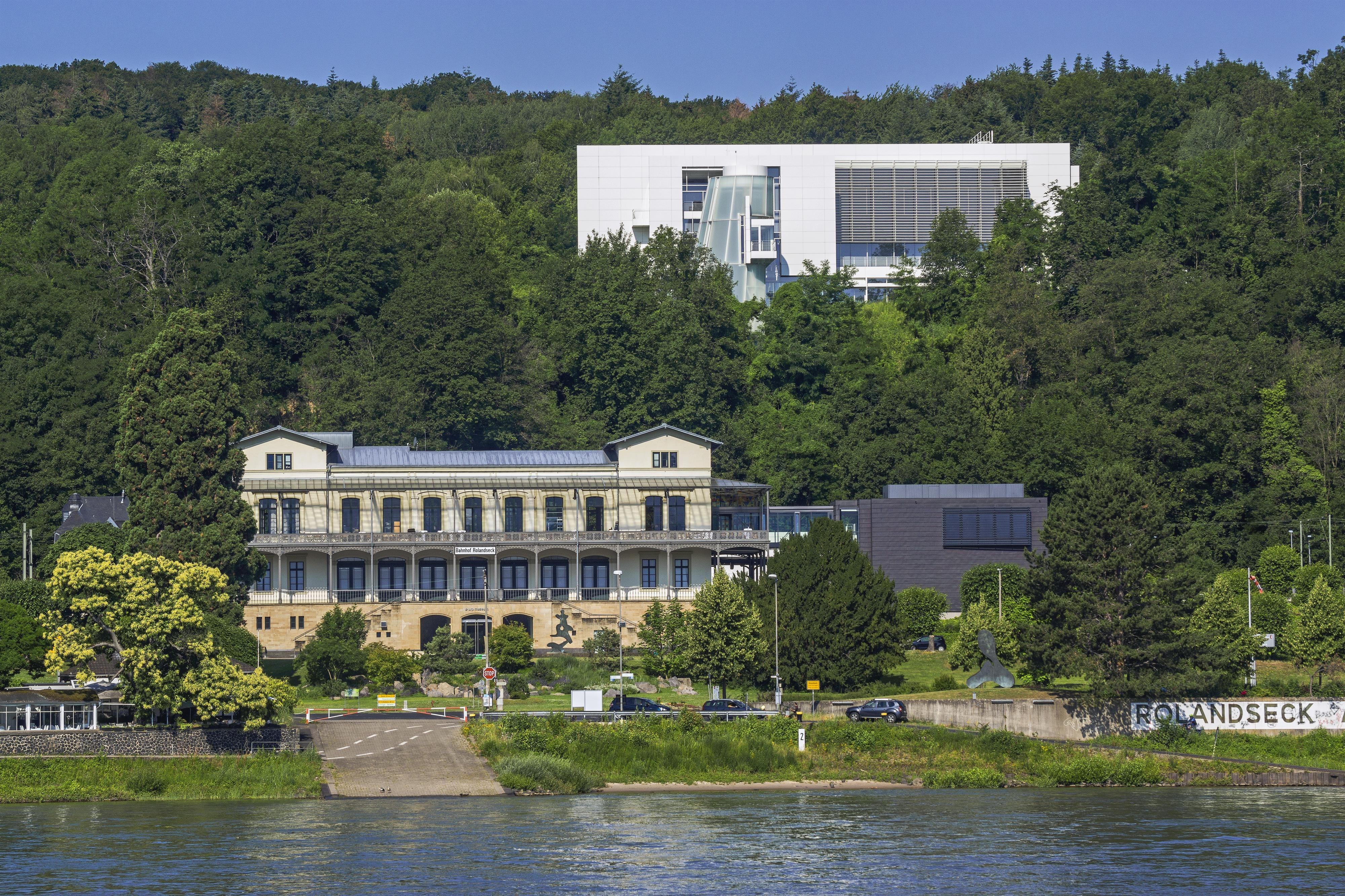 The classicist railway station of Rolandseck , built in 1856, was the terminus of a private railway that ran from Cologne. Its magnificent ballroom was already a meeting place for society and a venue for cultural history on the Rhine in the middle of the last century. Today, the station Rolandseck is connected to the new museum building designed by Richard Meier on the heights of the Rhine. The museum presents works by Hans Arp, Sophie Taeuber-Arp as well as international contemporary art. It also hosts large-scale exhibitions of works from the "Rau Collection for UNICEF".