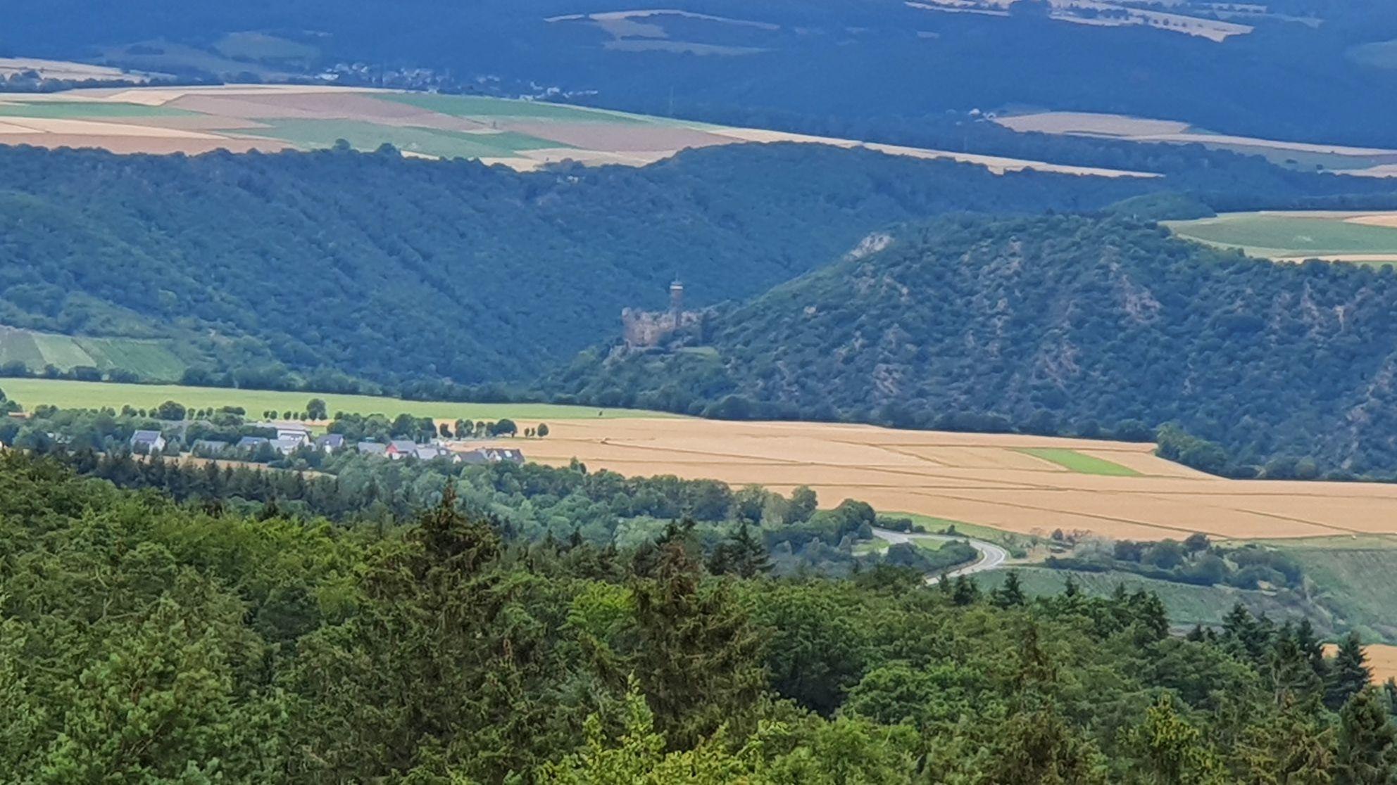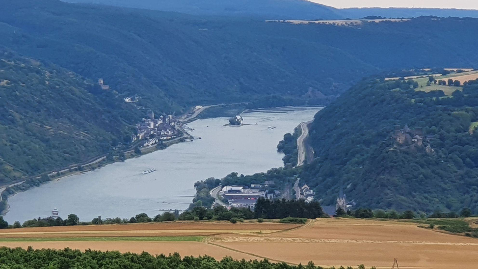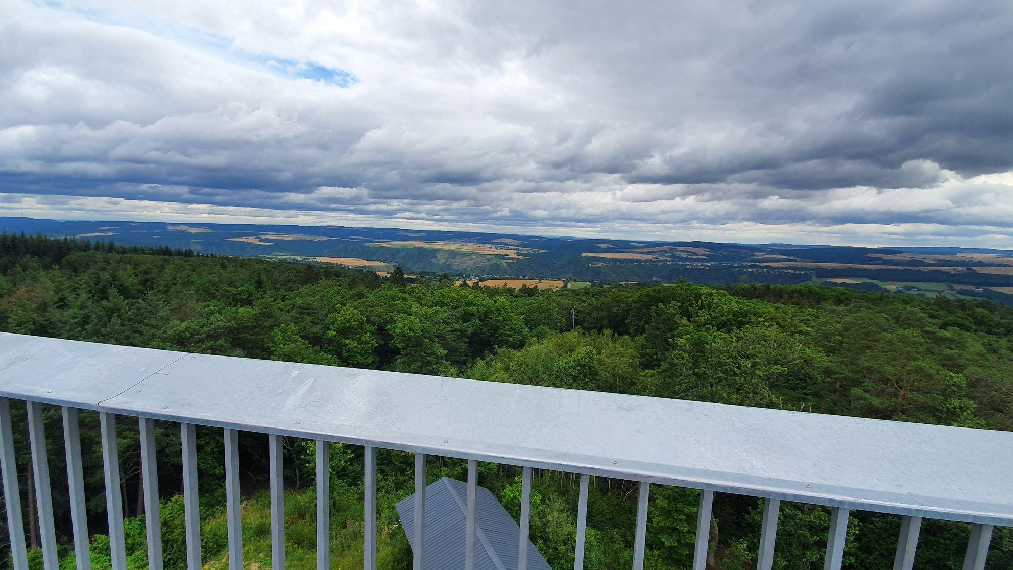 Observation tower with historical background featuring views of the Loreley, the Sterrenberg, Liebenstein, Katz, Maus, Gutenfels, and Pfalzgrafenstein castles, among others.