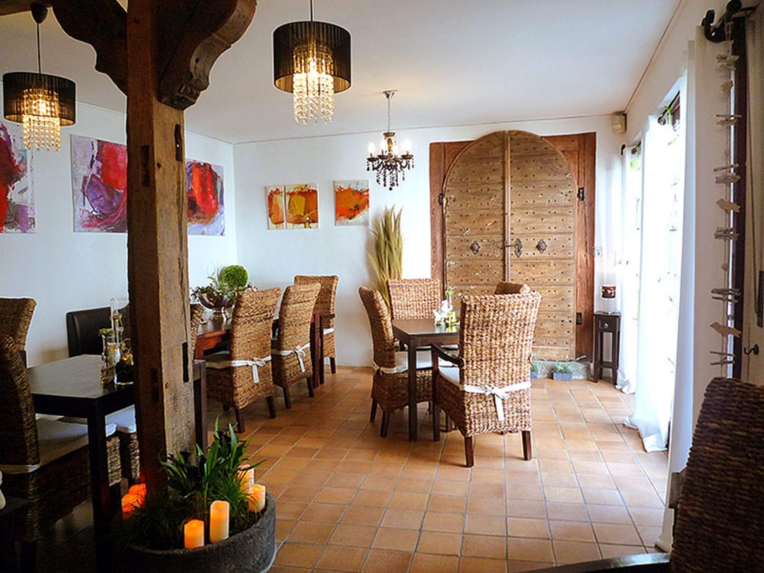Visitors can also stay - or just - enjoy a delicious coffee and homemade cake. From cakes to small tasty snacks to small dishes, the café also offers Italian chocolate and unusual tea varieties in beautiful packaging as gift ideas. Art lovers have the opportunity to purchase the pictures displayed on the walls. In summer, food and drinks are also served outdoors.