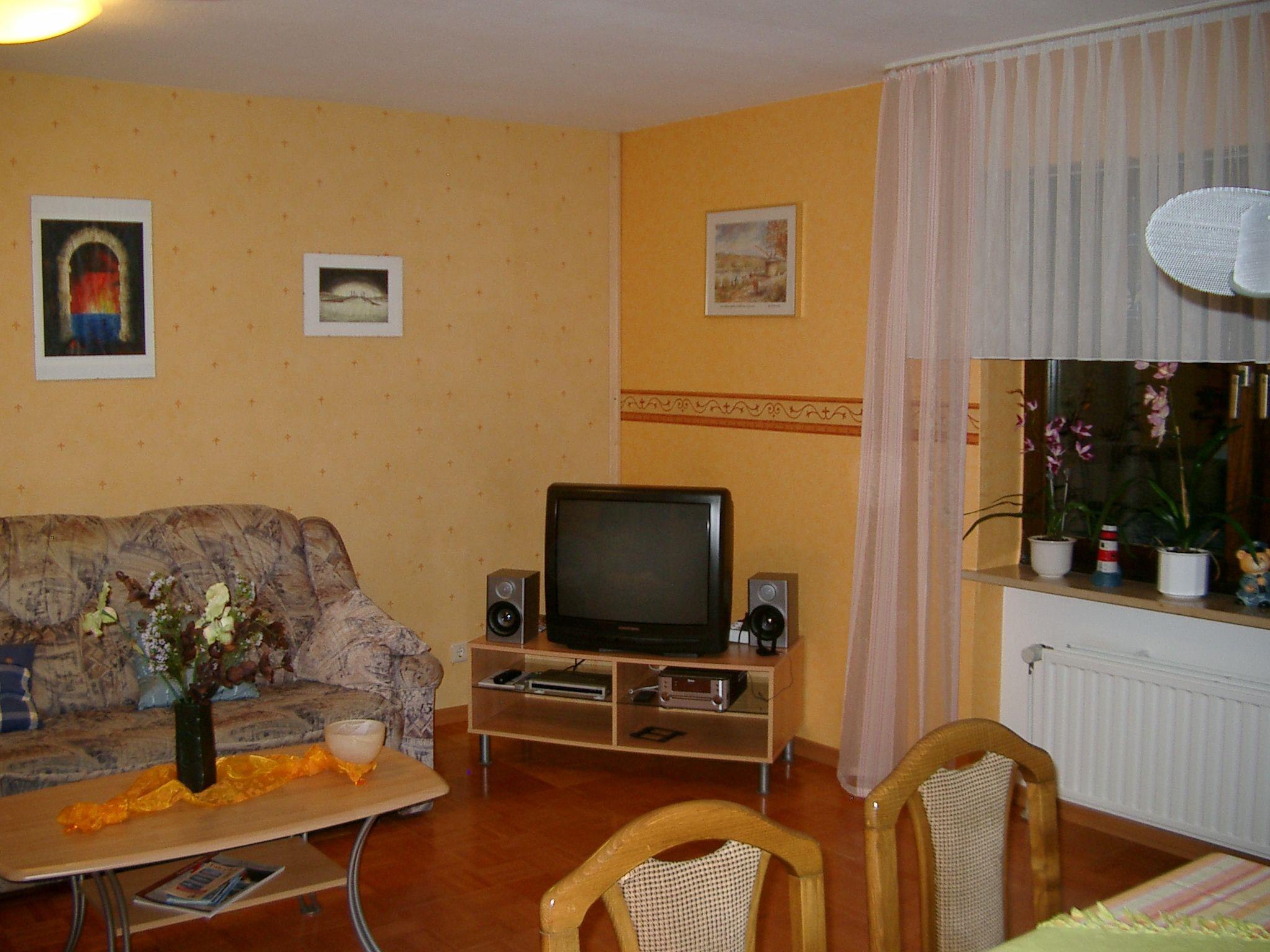 - Combined living and dining room with TV (satellite connection), radio, CD player, dining table, sofa