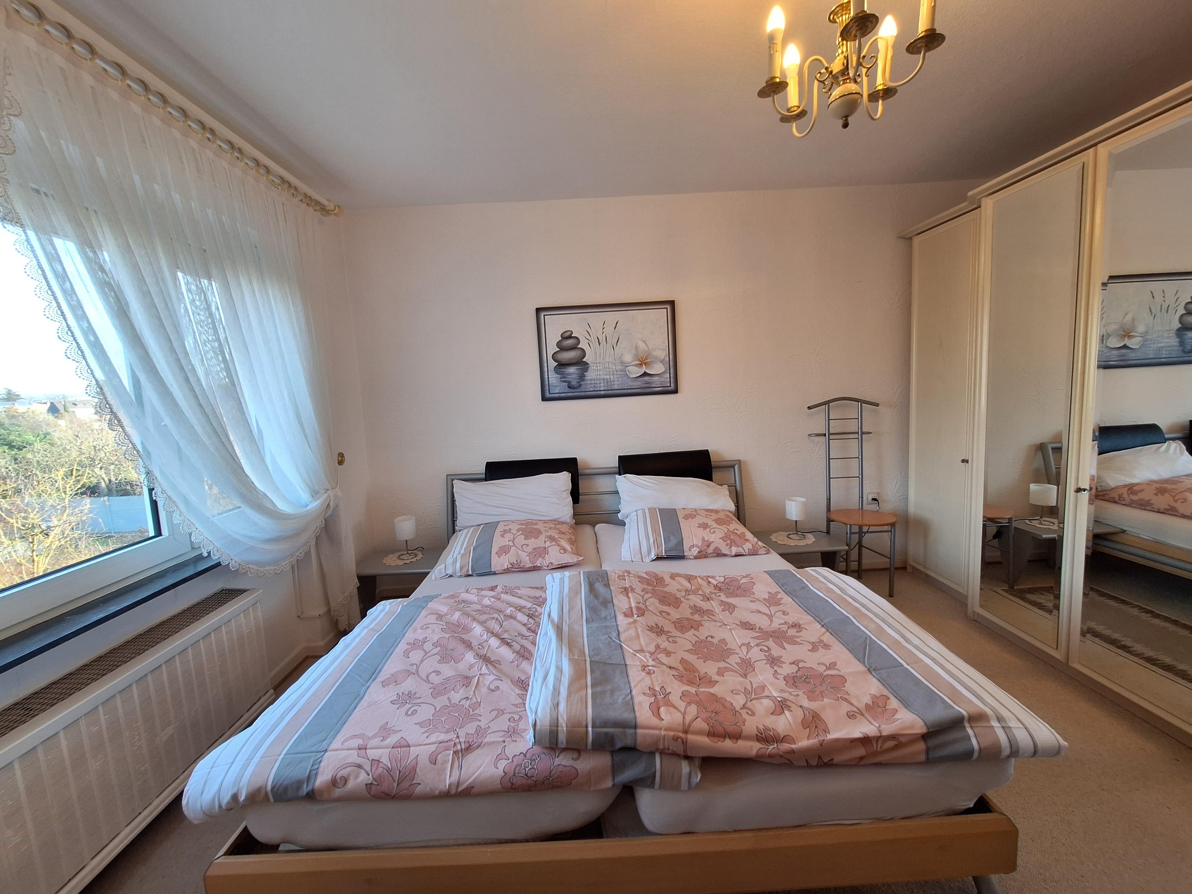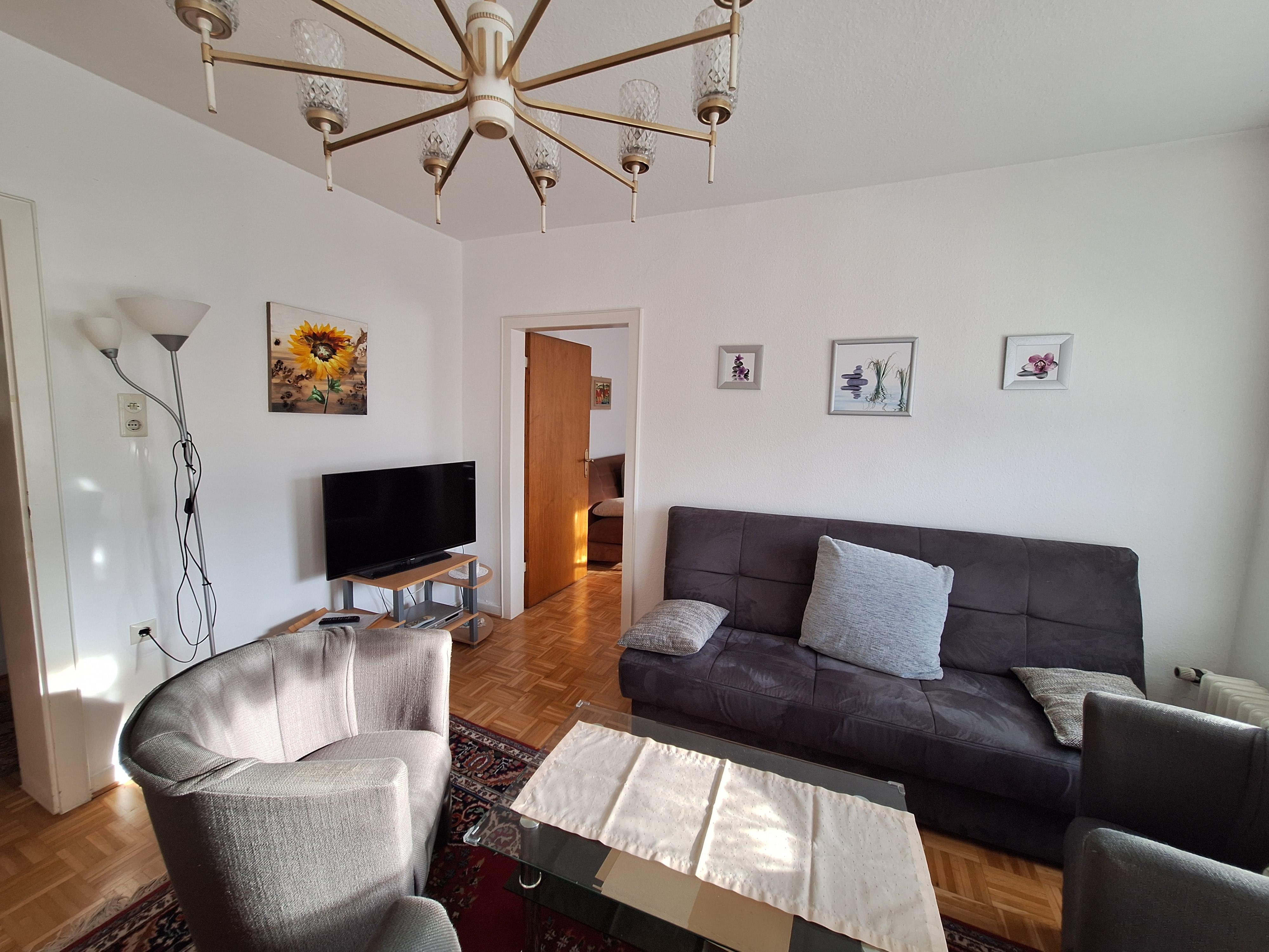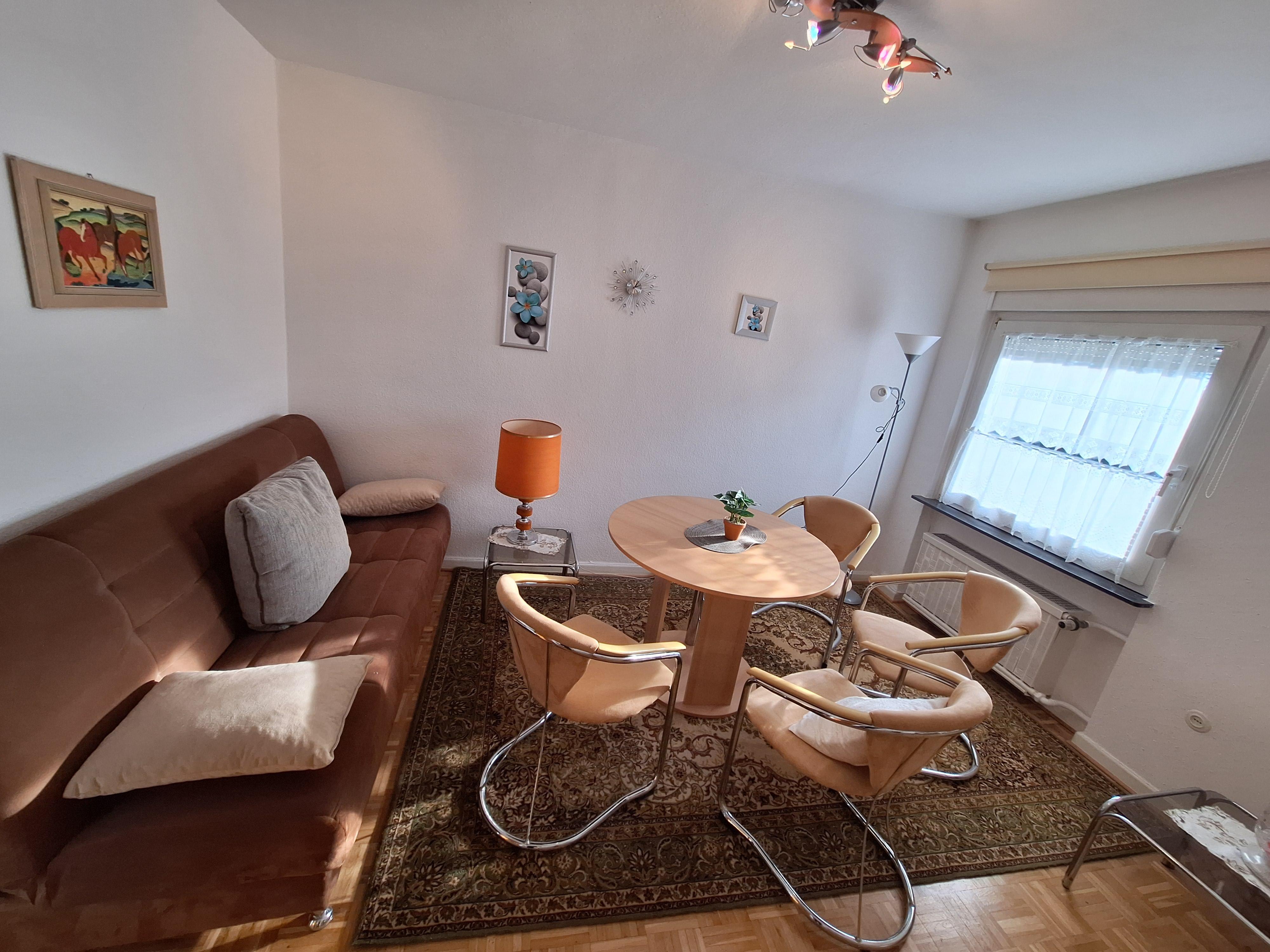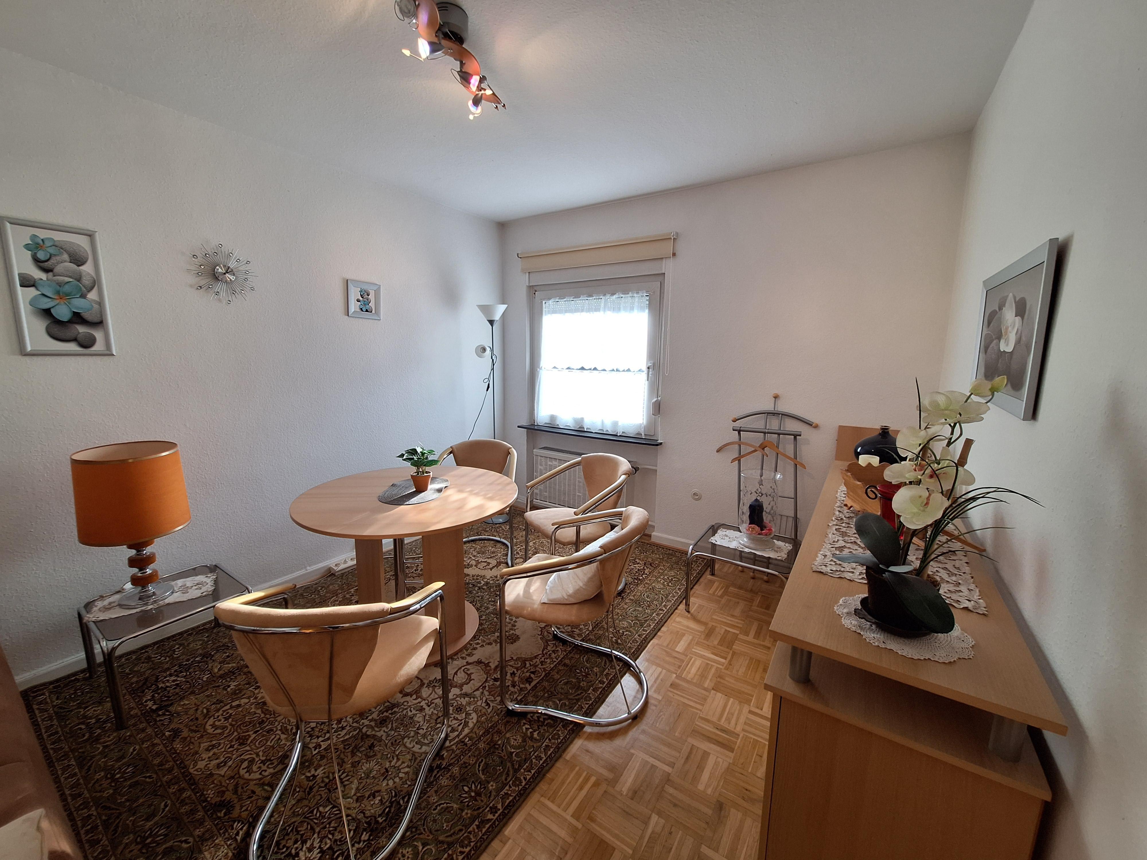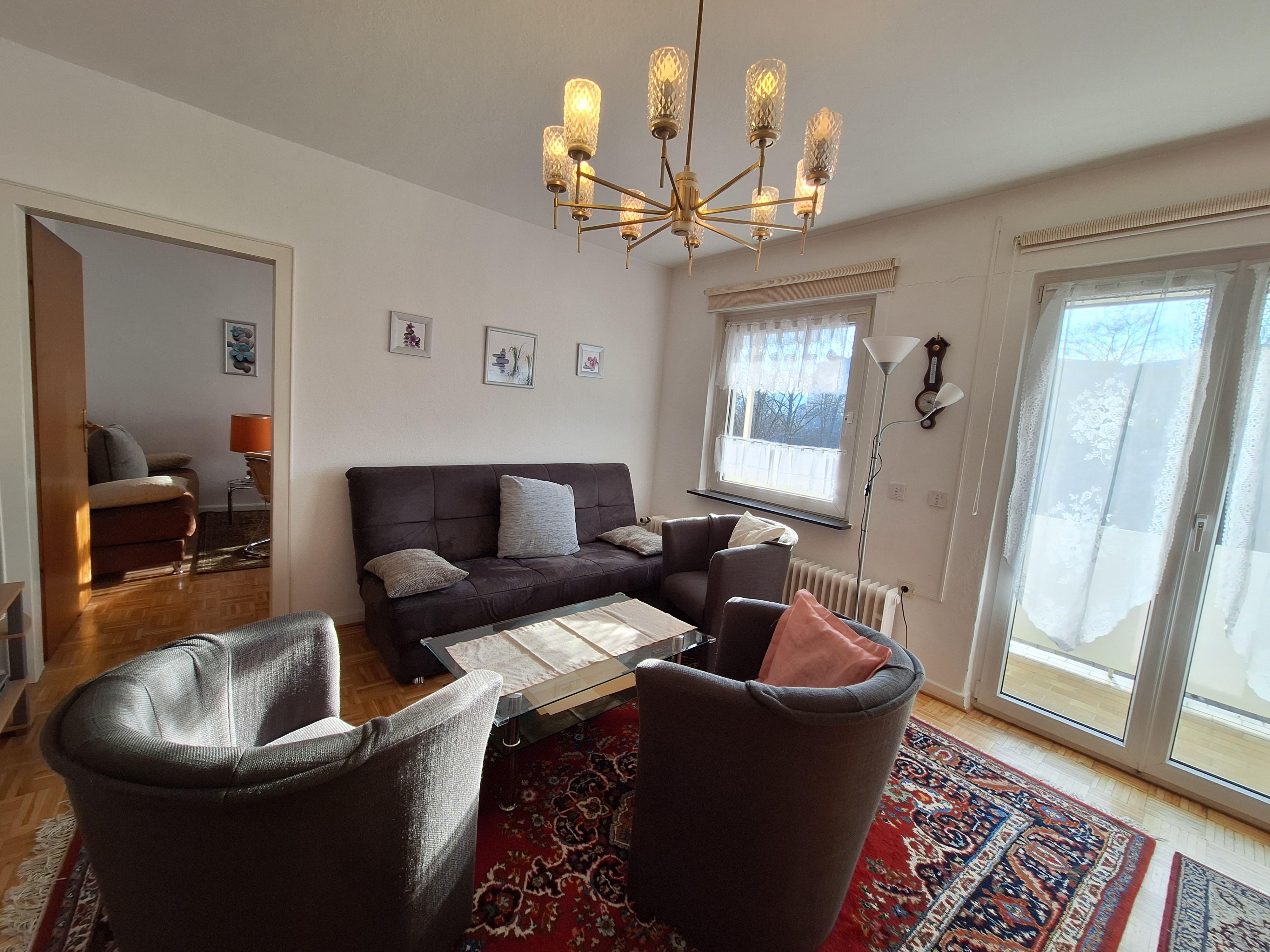 Welcome to the Koblenzer-Karthause. This bright and quiet holiday apartment is perfect for a city trip during the day and winding down in the evening in a cozy ambiance. With 74 m², it accommodates 2–4 people and is divided into a kitchen, living and dining room, bedroom, bathroom, and two balconies. The apartment is located on the first floor of our multi-family house. Public parking spaces are available directly at the house. Upon arrival, the beds are made and towels are provided. Ideally situated just a few steps (100–150 m) from the Federal Archive and a shopping center with supermarkets and a bakery. The district is located on a plateau between the Rhine and Moselle rivers and captivates with its green surroundings, including the expansive Koblenzer city forest and various recreational opportunities. The Koblenz city center and attractions like the Deutsches Eck or the Ehrenbreitstein Fortress are easily accessible either via the bus stop right in front of the door (lines 2, 12, and 620) or by car in a short time.