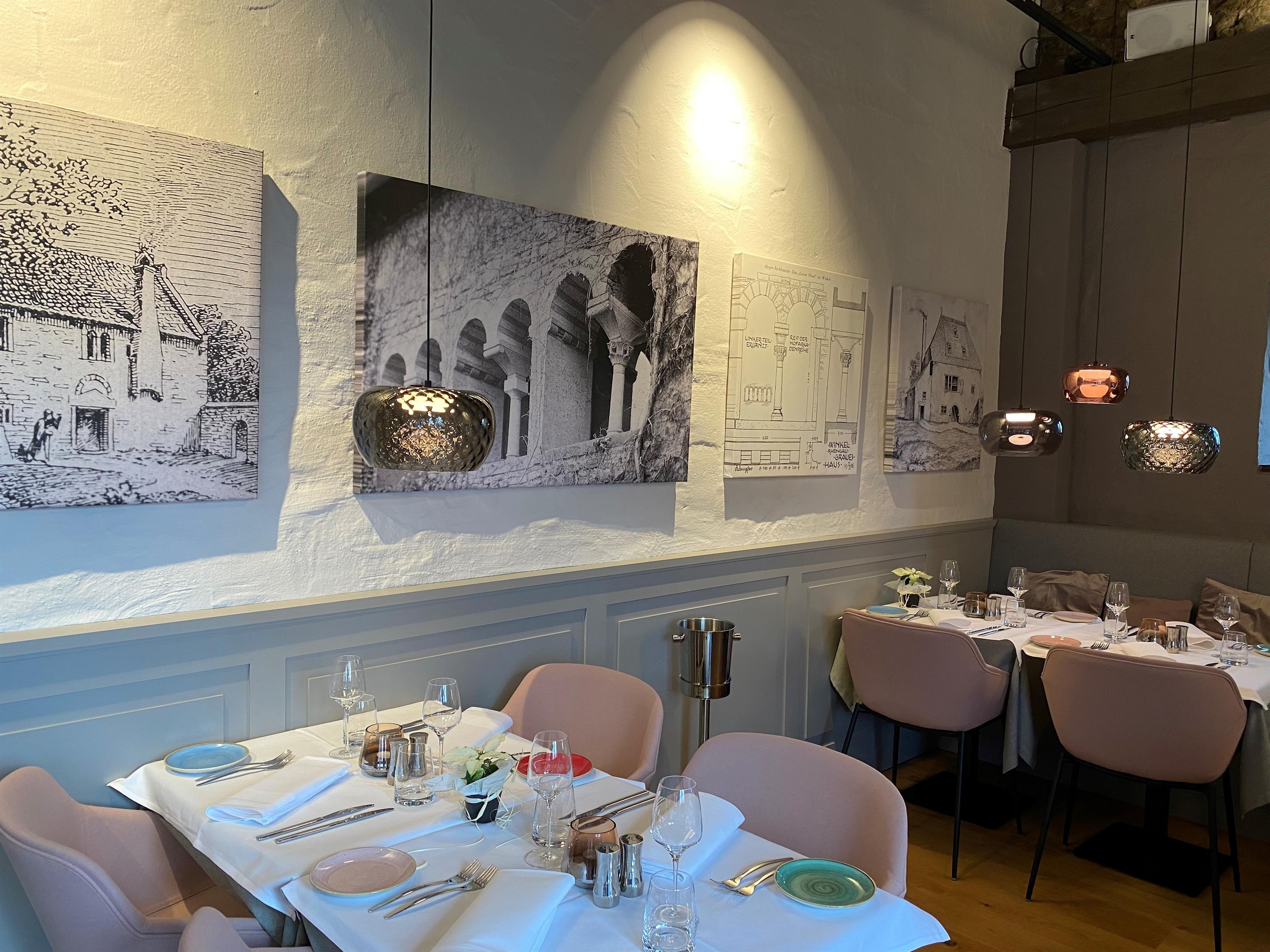 In a refined ambiance with a view of the Rhine, the in-house vineyard, and the romantic courtyard, you can enjoy exquisite dishes from upscale gastronomy here.