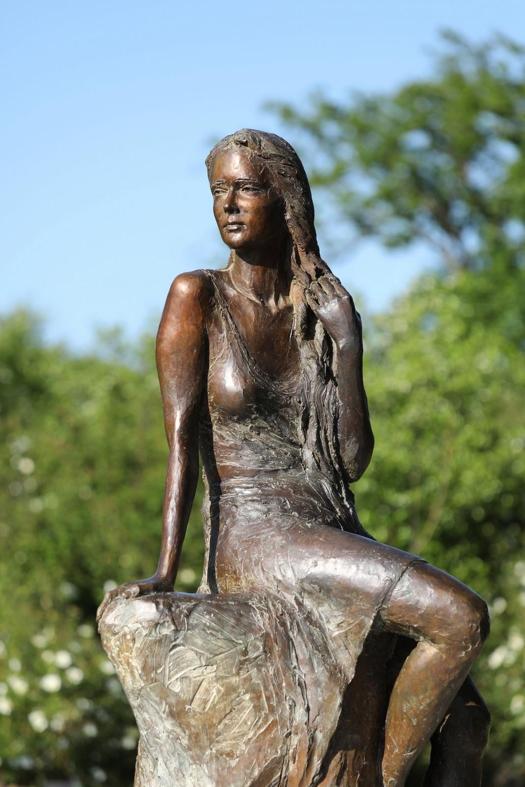 The Loreley. She has made our surroundings world-famous and a tourist attraction. Since spring 2023, there is the new Loreley sculpture on the Loreley Plateau. The 2.20 m high artwork was created by the Berlin sculptor Valerie Otte, whose design was able to stand out in a national realization competition with citizen participation among more than 50 competitors. Valerie Otte depicts the beautiful Loreley classically on a rocky pedestal and adorns her figure with numerous insignia from the Loreley story. Her flowing hair resembles a river course. However, the artist emphasizes in her version of the Loreley less the eerie danger that she represents, according to the legend, for the boatmen. In her own words, she tries to present a "feminine view of the Loreley" - as a woman who mourns her beloved and is "deeply lost in herself and her thoughts."