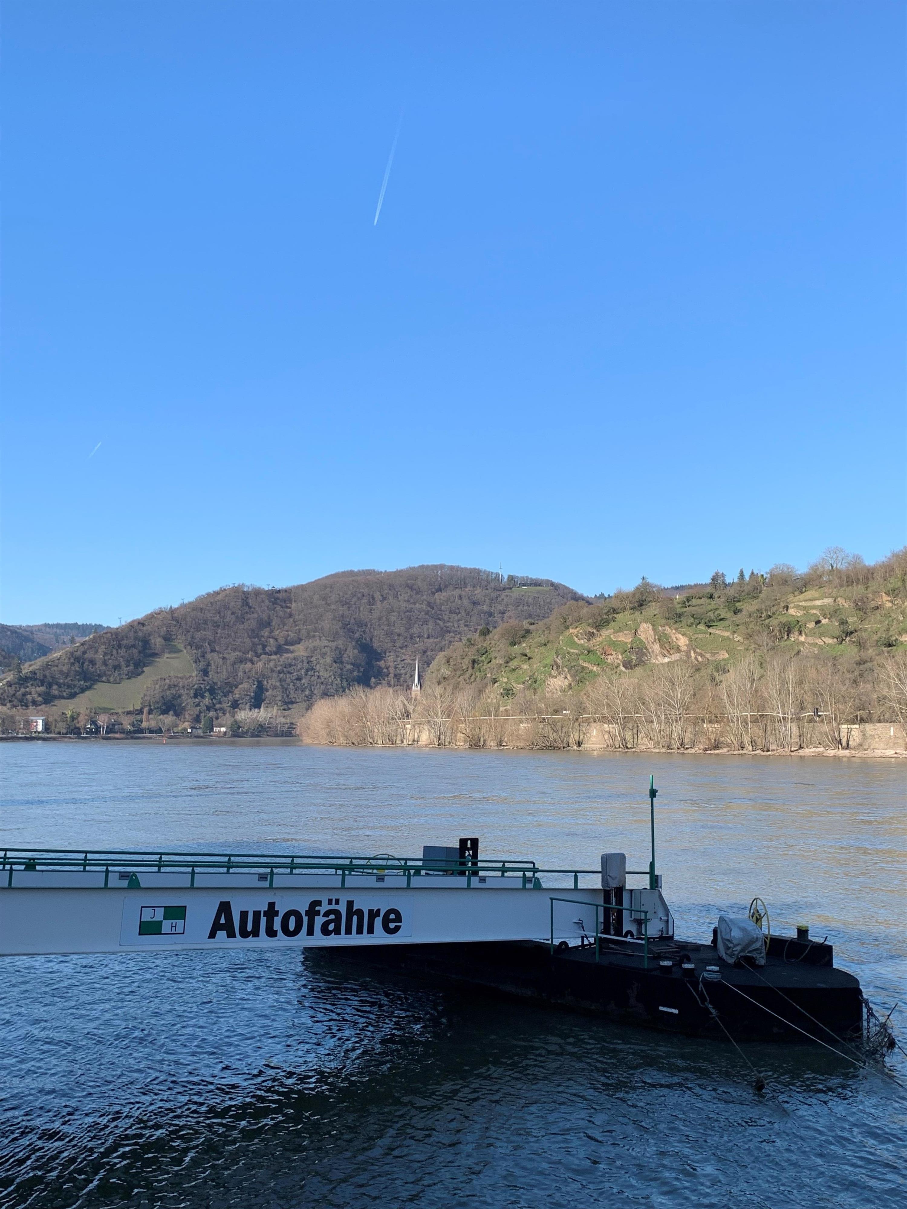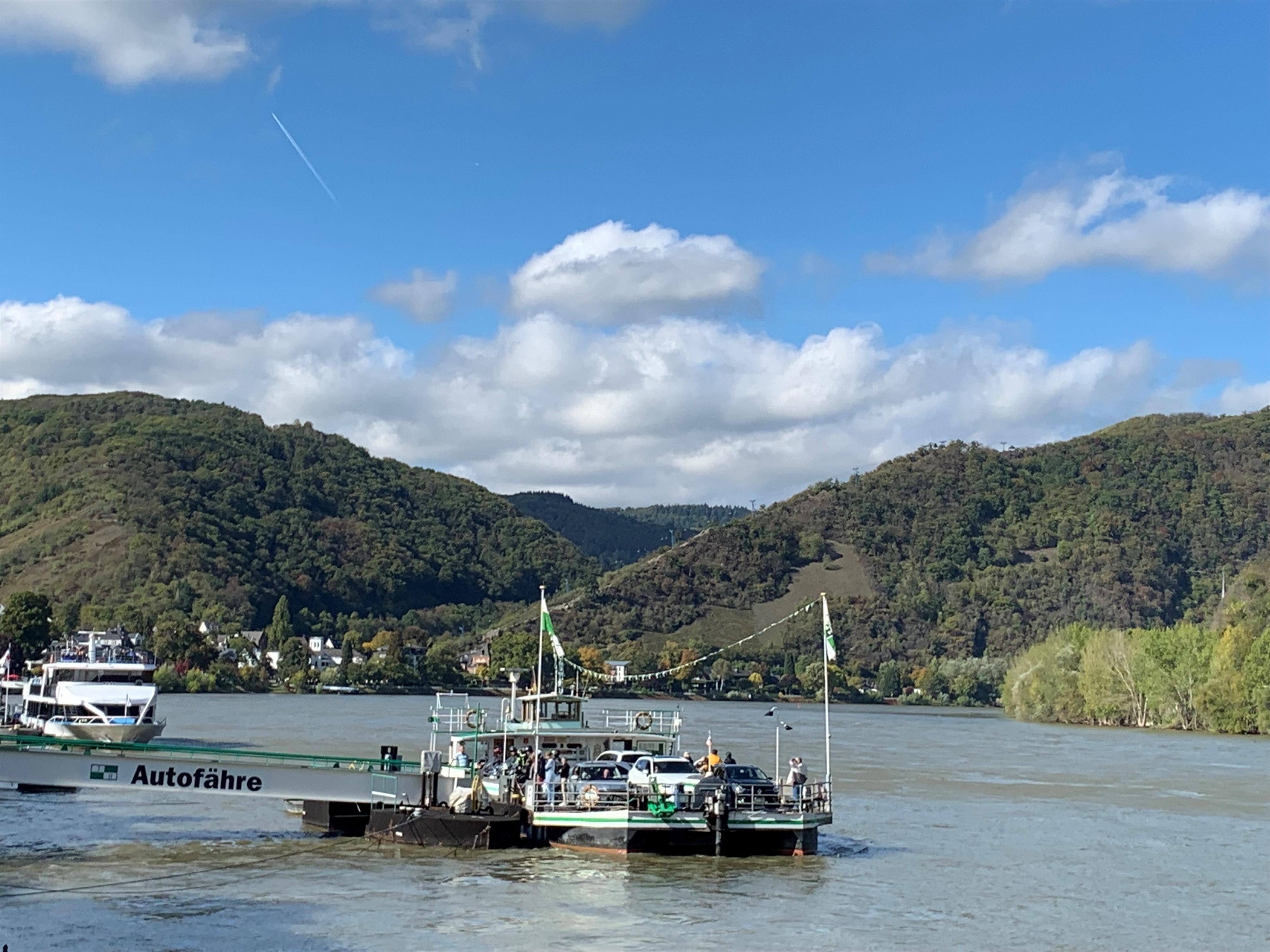 The Deleu family's Stadt Boppard ferry operates on the Rhine between the towns of Boppard and Filsen at Rheinkilometer 570.