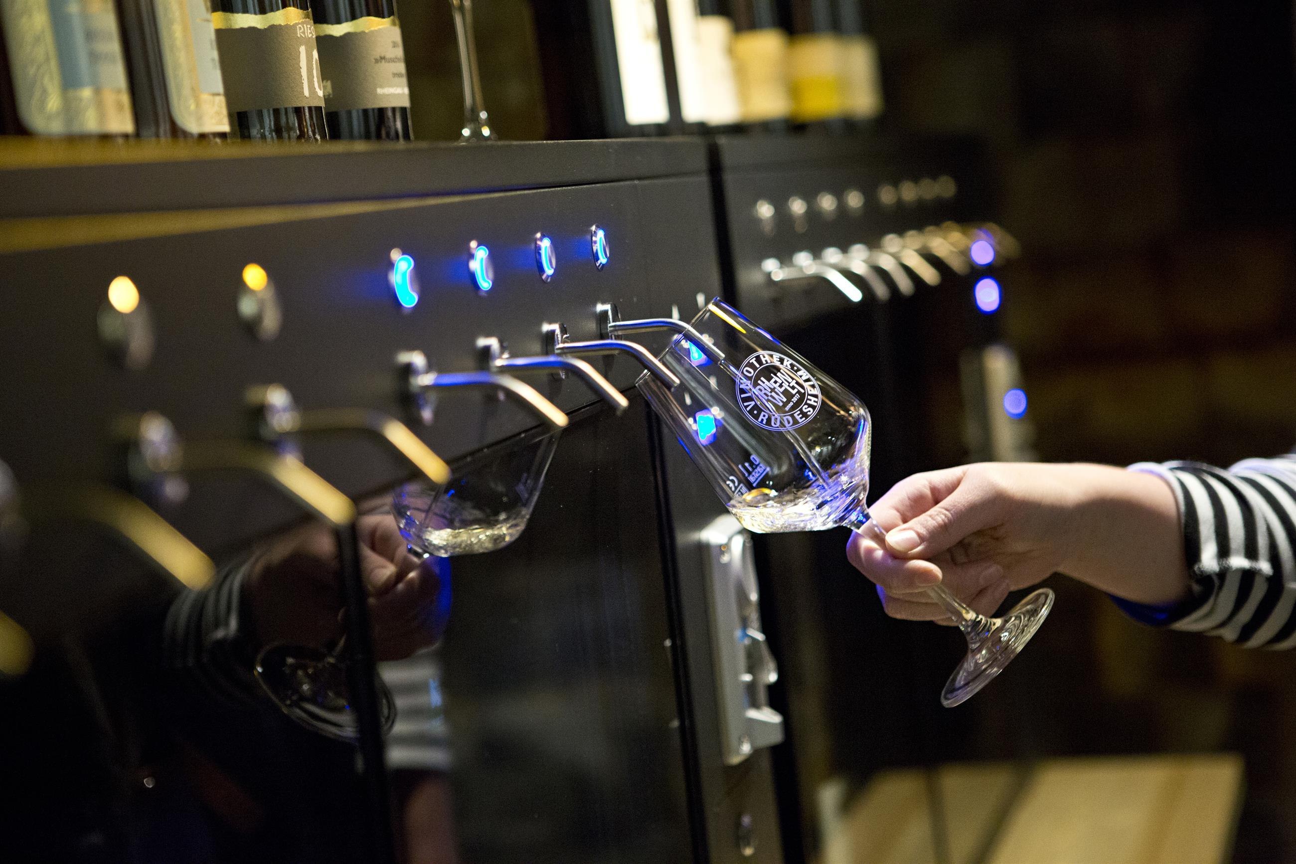 where the wines of the winemakers are presented and can be independently tasted using dispensers . Additionally, a modernly designed gastronomy with shop invites visitors to linger.