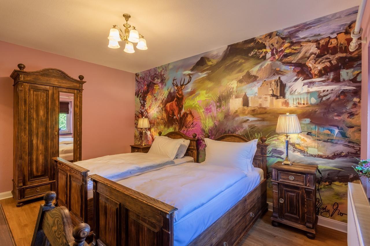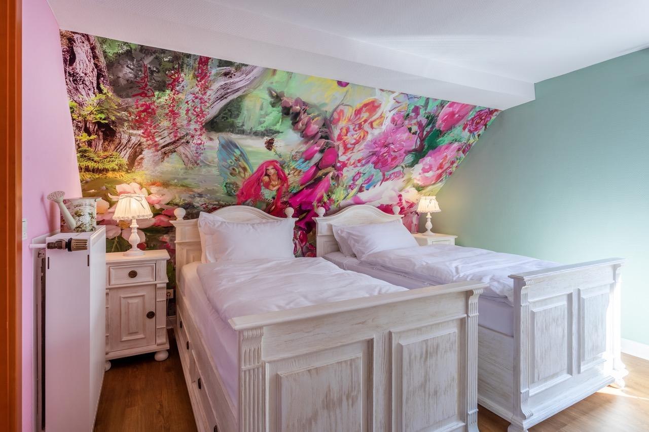 With great attention to detail, the team around owner Gary Blackburn has set up 12 themed rooms for you, which were imaginatively staged by the artist AndyMo. For example, you will find a "British Room", "Scottish Room", "Sherlock Holmes Room", "Cornish Room", "Queens Room", "Harry Potter Room", "Fairy Room" and a "Beach Hut Room". The rooms "Dinner for one", "Agatha Christie", "James Bond" and "Mr. Bean" are new additions. The large luxury holiday flat offers space for up to 10 people.