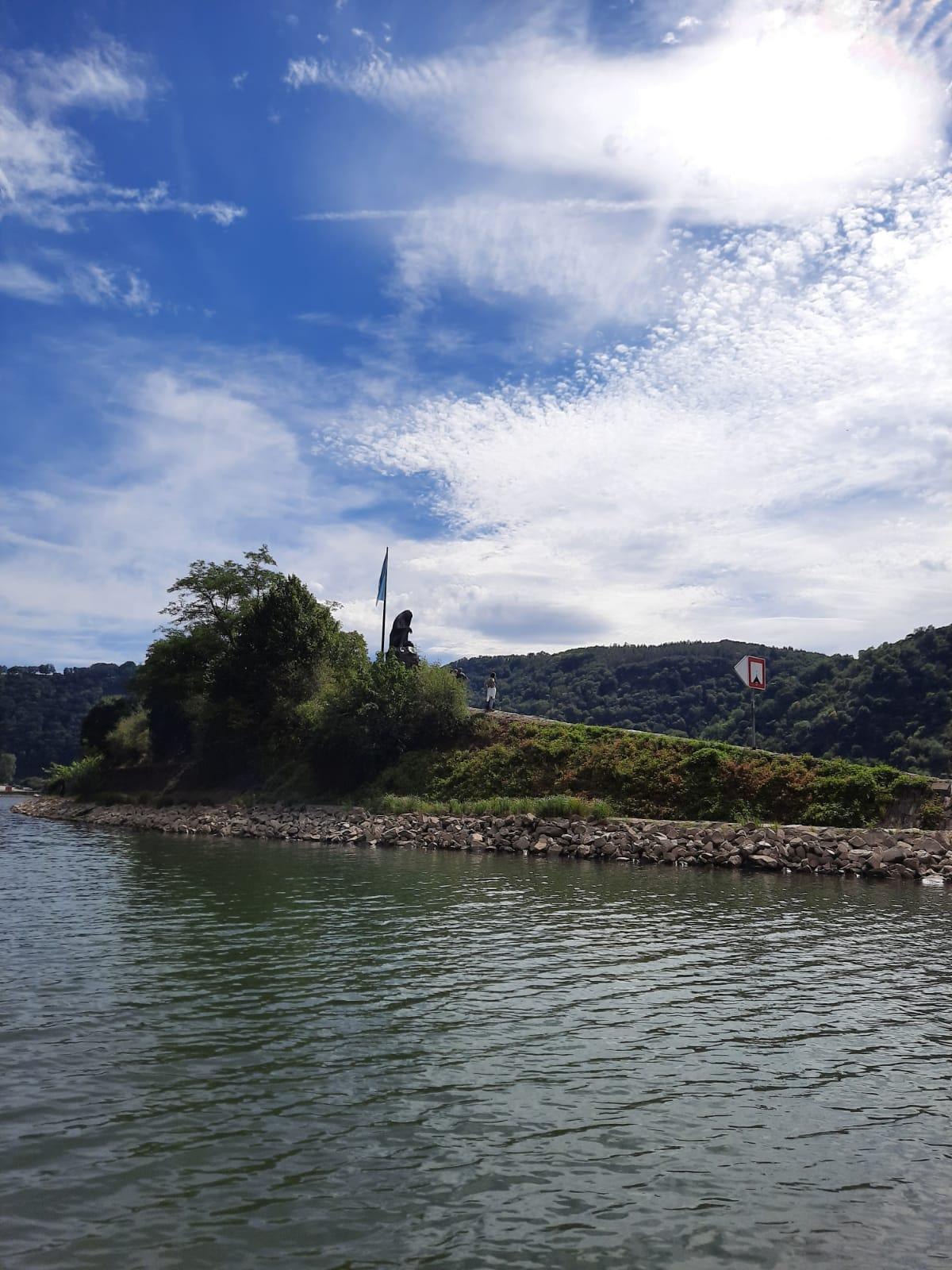 La estatua de Loreley se encuentra en la cima del espigón del puerto en St. Goarshausen.