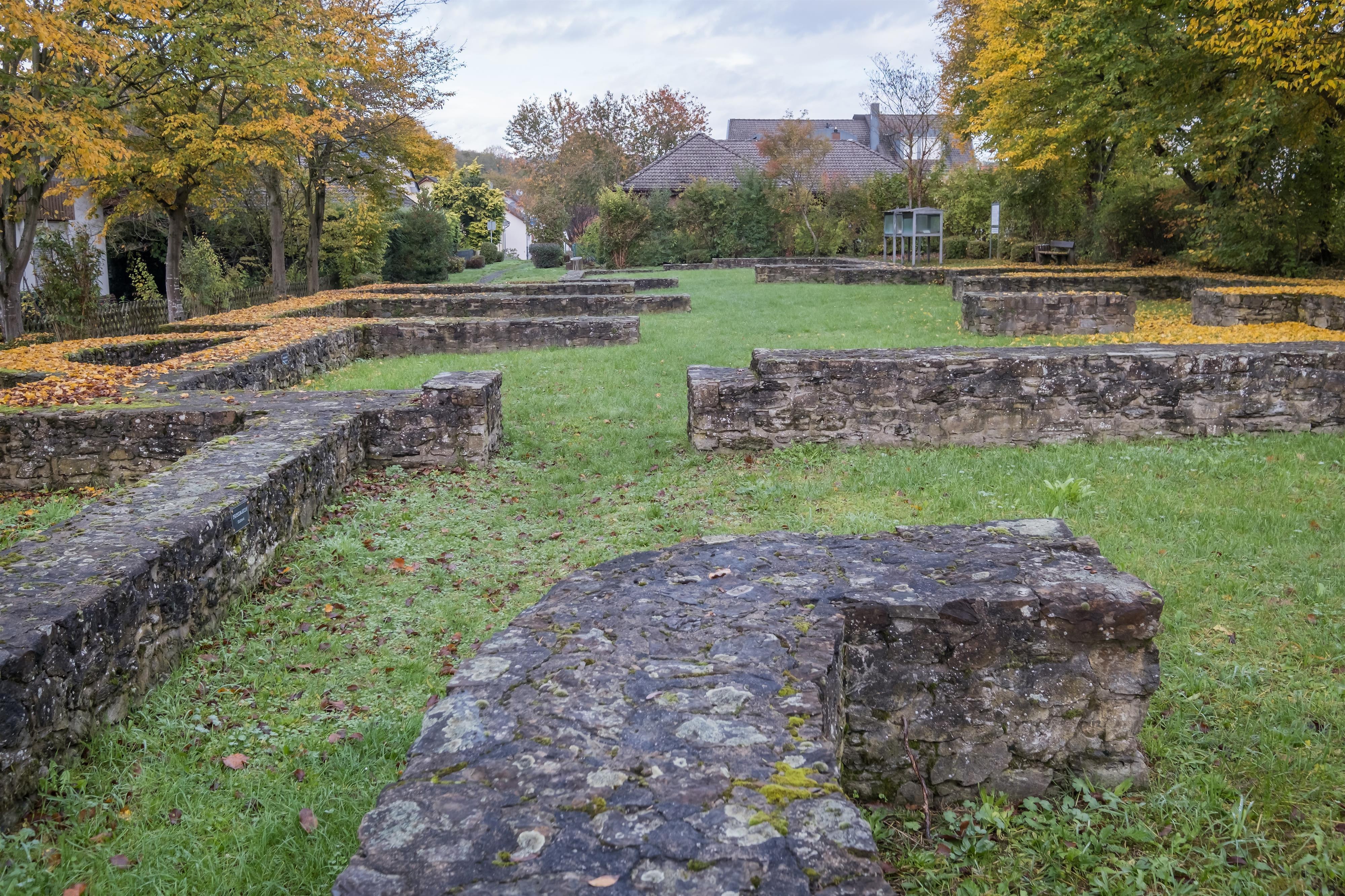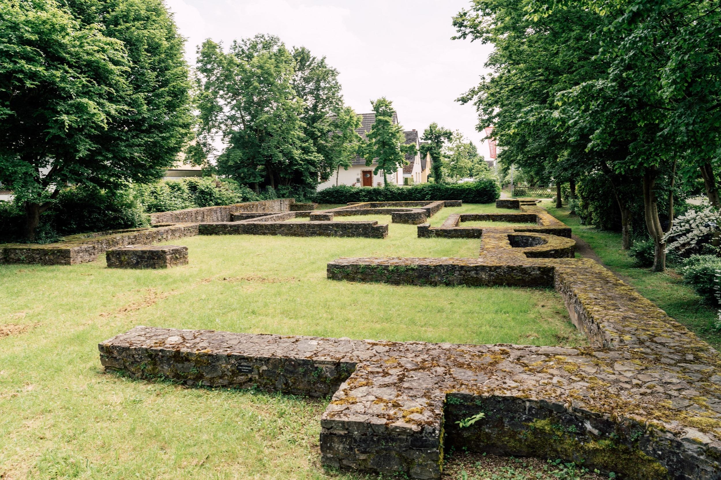 A pesar de la posterior edificación del terreno, los cimientos del enorme baño romano, que estaba ubicado dentro del castillo y no, como era habitual, fuera de la instalación fortificada, están hoy asegurados y ofrecen una impresión de la imponente construcción.
