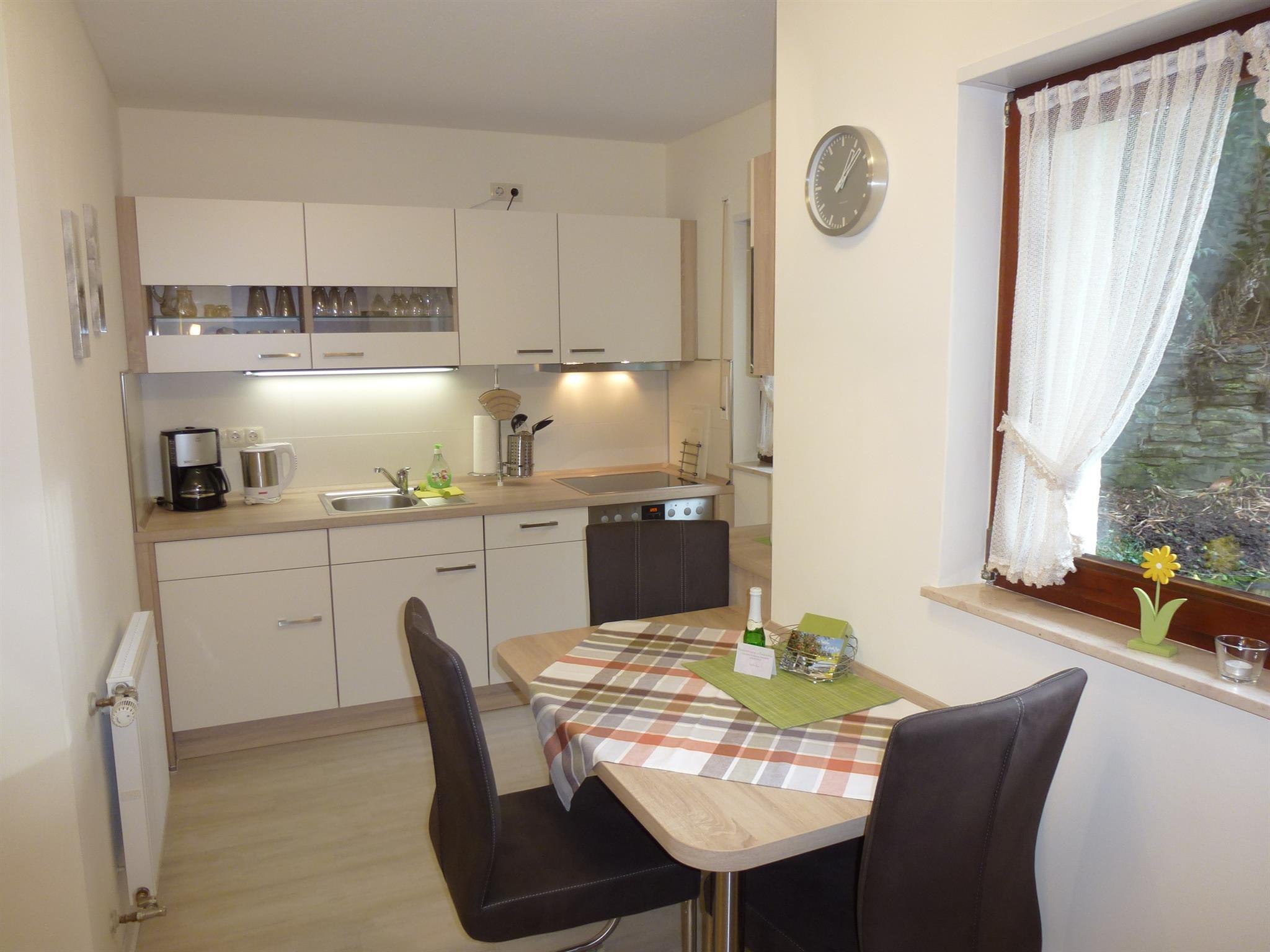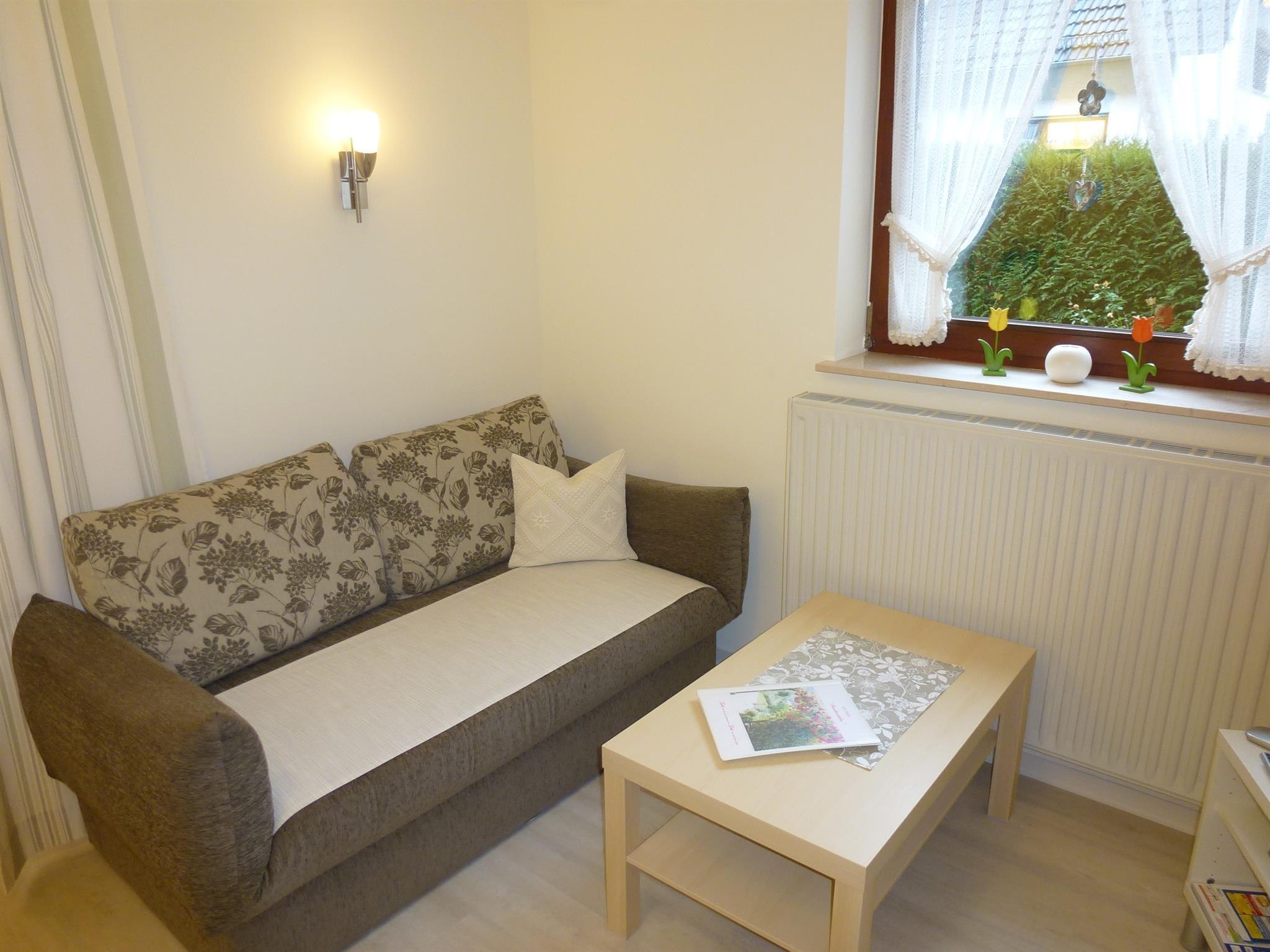 Notre appartement de vacances non-fumeur et confortable, situé au cœur de la nature, offre sur 39 m² de l'espace pour 1 à 3 personnes. Il est de plain-pied, dispose d'une entrée séparée, d'un petit jardin clôturé avec terrasse et pelouse, d'un salon-chambre confortable, d'une cuisine entièrement équipée, d'une douche/WC et d'un parking juste devant la maison.