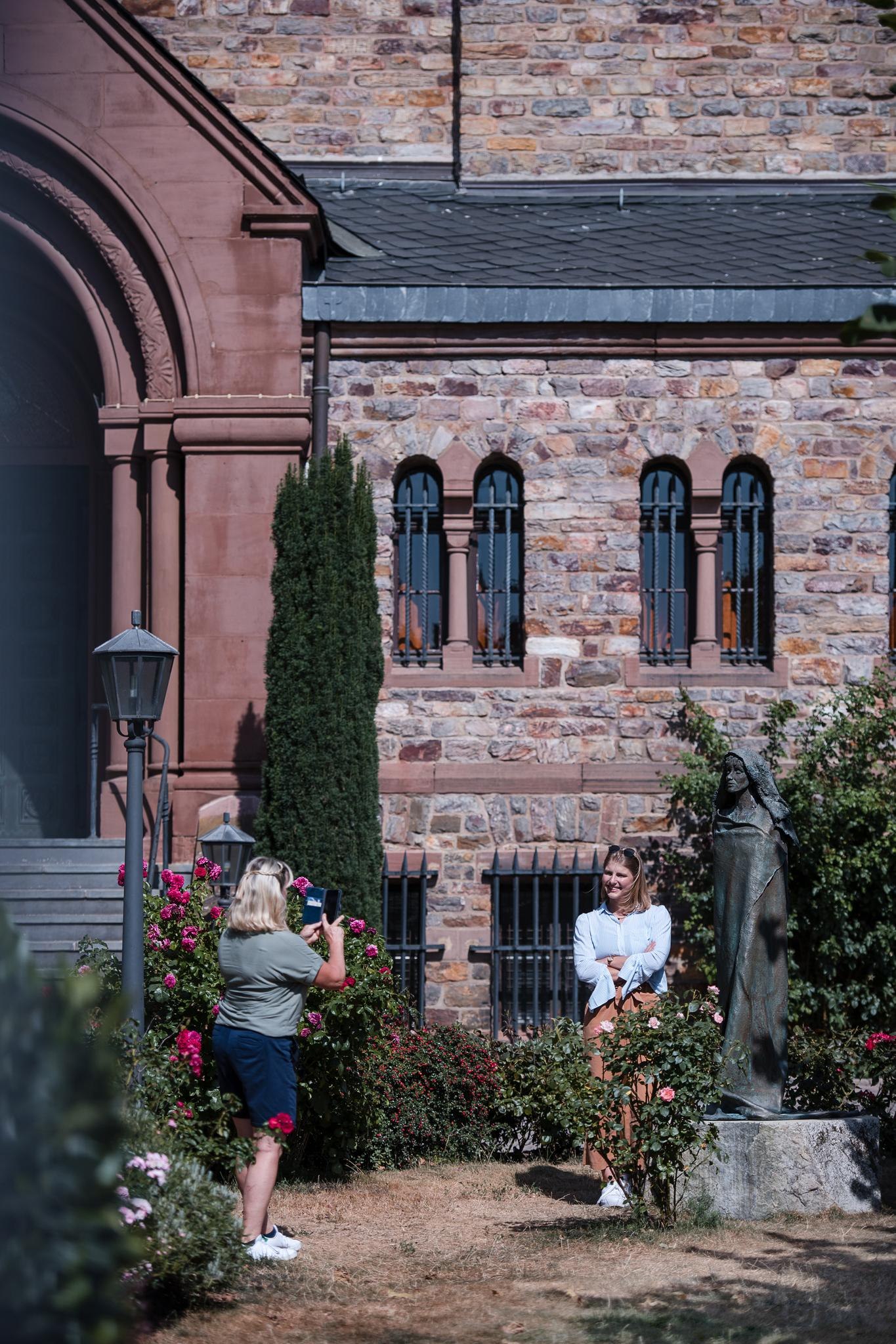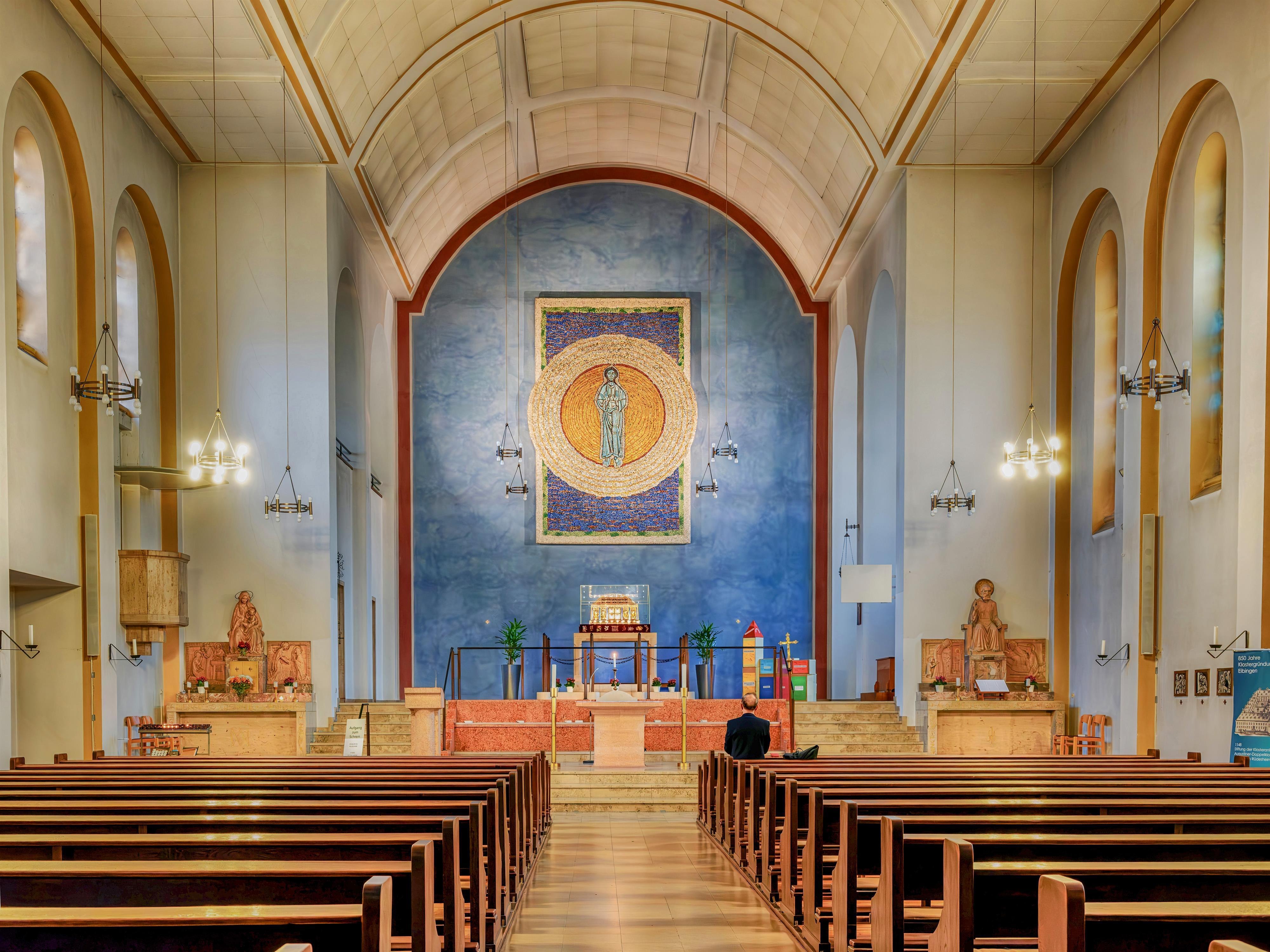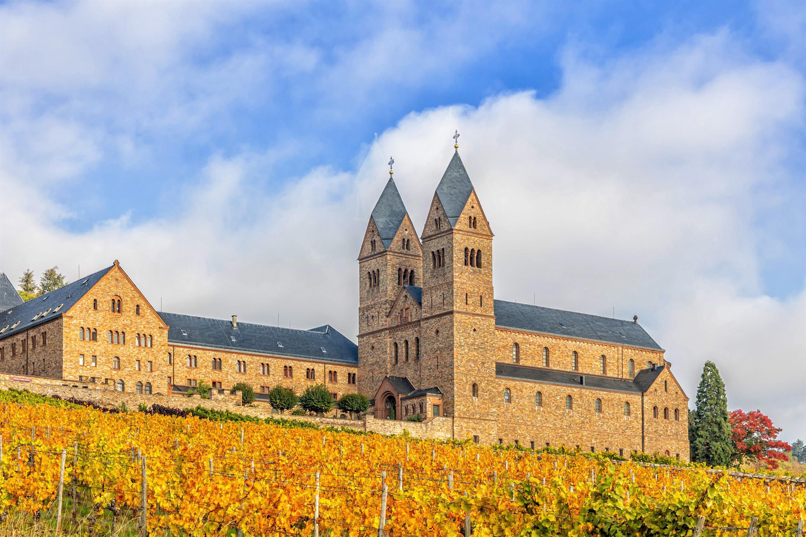 L'abbaye bénédictine Sainte Hildegarde, située au-dessus de la ville de Rüdesheim am Rhein, a été construite au début du dernier siècle. Elle remonte directement à l'époque de la sainte Hildegarde de Bingen, qui avait fondé le « monastère précurseur » d'Eibingen, réoccupé en 1165 et séculier en 1803. Jusqu'à aujourd'hui, les bénédictines de Sainte Hildegarde vivent selon des règles monastiques vieilles de plus de 1400 ans, qui remontent à Saint Benoît – amour de Dieu, humanité, joie de la foi et une vision réaliste et pragmatique de l'homme. Une grande boutique monastique, un vignoble, un commerce de produits à base d'épeautre, un atelier de bijouterie, un atelier de céramique et un atelier de restauration d'archivés ecclésiastiques constituent les bases économiques de ce monastère de renommée mondiale. L'abbaye propose également des chambres d'invités, où les gens peuvent chercher la paix et la retraite pendant une période limitée derrière les murs de Sainte Hildegarde ou participer à des cours et séminaires des bénédictines.