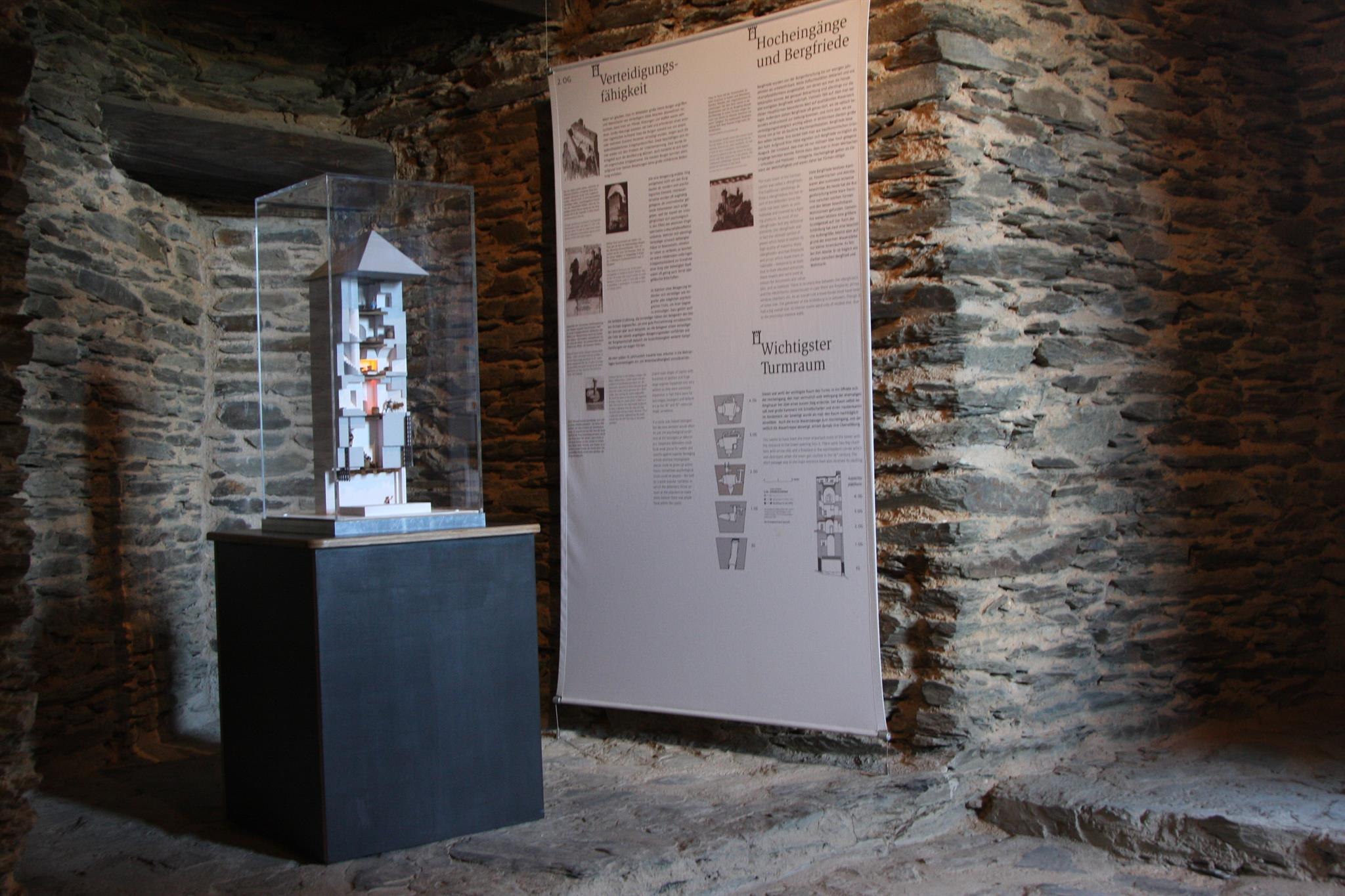 Dans la tour d'entrée du Schönburg, les visiteurs découvrent des informations intéressantes sur :