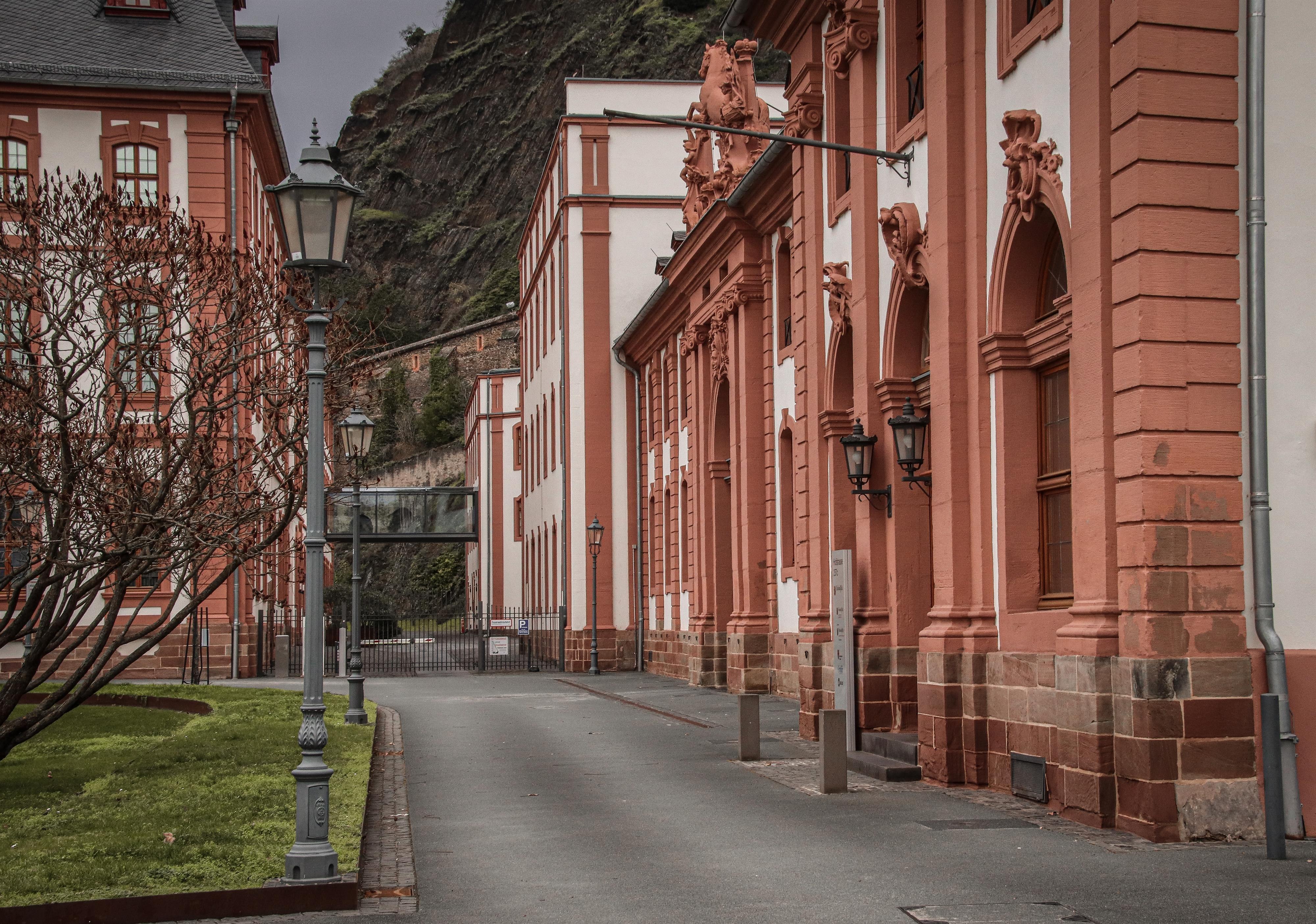 Het gebouw stond oorspronkelijk in de onmiddellijke nabijheid van het kasteel Philippsburg, destijds een van de belangrijkste en grootste barokgebouwen aan de Rijn. In 1801 werd het paleis Philippsburg door de Fransen verwoest, maar het kloostergebouw bleef behouden. In het wereldlijke bestuursgebouw van de keurvorst van Trier was onder andere het kiesgerecht ondergebracht. Ondertussen deed het gebouw ook dienst als residentie, troepenverblijf, militair hospitaal, zetel van de Nassause regering en opslagplaats voor proviand. In 1936 werd het dicasteriale gebouw omgebouwd tot kantoren. Het werd gedeeltelijk verwoest tijdens de Tweede Wereldoorlog en herbouwd in 1947.