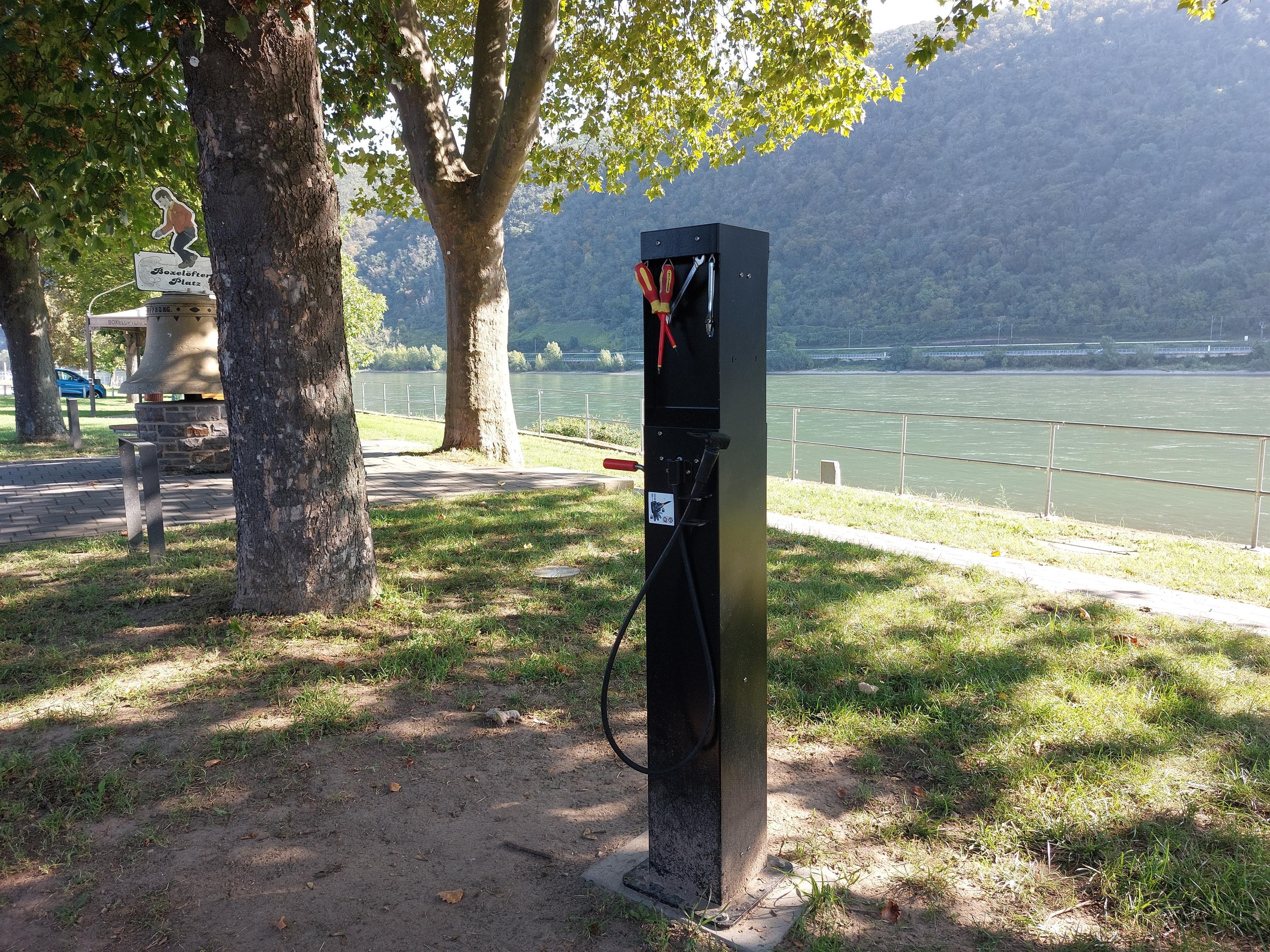 Service Station BikeRepair in Spay aan de Rijnfietsroute is een zelfbedieningsfietsreparatiestation. Het fietsstation bevat al het nodige gereedschap om een fiets te repareren. Een luchtpomp is ook geïntegreerd in dit servicestation.