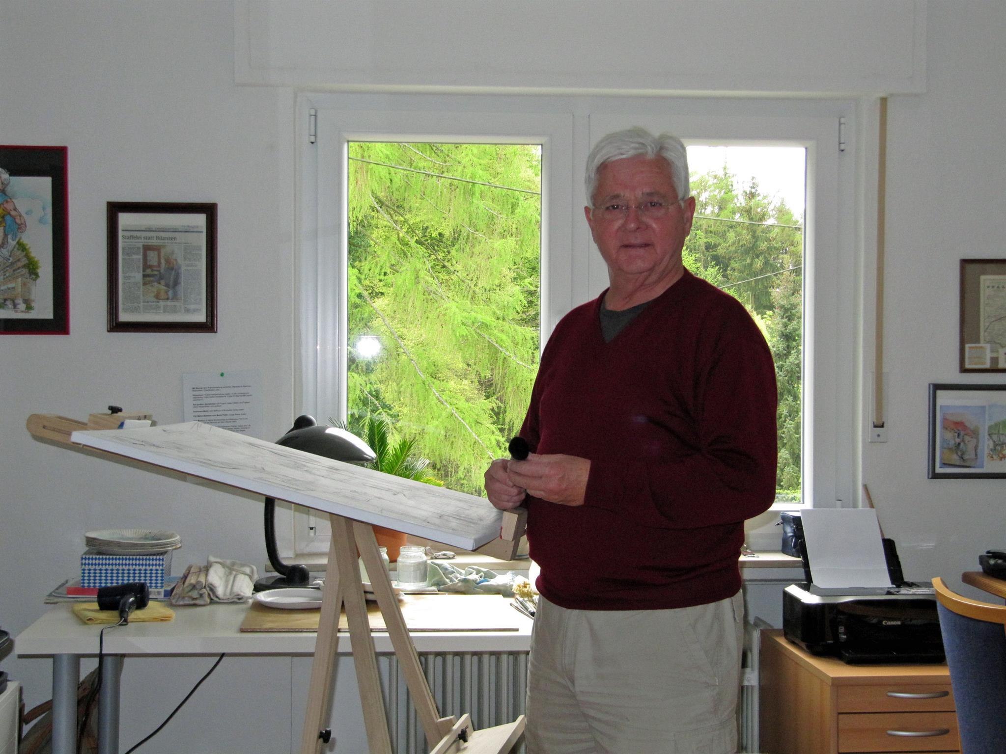 VITA De heer Schmitz is een enthousiaste hobbyschilder wiens werk af en toe te zien is op openbare tentoonstellingen in Linz. Sinds 2005, toen hij met pensioen ging, is aquarelleren een van zijn grote passies. Schilderen is voor hem het ideale medium om te ontspannen. Tegelijkertijd biedt aquarelleren hem de mogelijkheid om zich onder te dompelen in de wereld van kleur en creativiteit. Dit wordt ook mogelijk gemaakt door de vele schildercursussen en schilderseminars waaraan hij van 2005 tot 2010 in de Pfalz heeft deelgenomen. Geboren in Neuwied/Rijn in 1943, woonde in Linz/Rijn tot 1970 Opgeleid aan de Stadtsparkasse Linz als bankbediende/spaarbankadministrateur Tussen 1970 en 2005 onder andere reclamemanager bij Bezirkssparkasse Rastatt, adviseur bij Sparkassen- und Giroverband Rheinland-Pfalz in Mainz, directeur marketingafdeling bij Kreissparkasse Kaiserslautern, actief in verenigingen en lokale politiek. Sinds 2010 woont hij samen met mijn vrouw weer in zijn oude woonplaats Linz am Rhein. Sindsdien wijdt hij zich ook aan het aquarelleren in Linz en breidt hij zijn kennis uit door deel te nemen aan schildercursussen in de nabije en verre omgeving van Linz. De bijzondere aantrekkingskracht van deelname aan schildercursussen ligt voor hem in de verscheidenheid aan kennis die door de verschillende kunstenaars wordt overgedragen. Door zijn maatschappelijke betrokkenheid bij fair trade (sinds 2012 voor de verenever tentoonstellen.iging Eine-Welt Linz e.V., sinds 2013 voor de Weltladen Linz en sinds 2018 in de stuurgroep Fairtrade Town Linz) ontbrak het hem de laatste jaren aan de nodige tijd voor exposities. Vanaf 2020 wil hij zijn aquarellen weer intensi