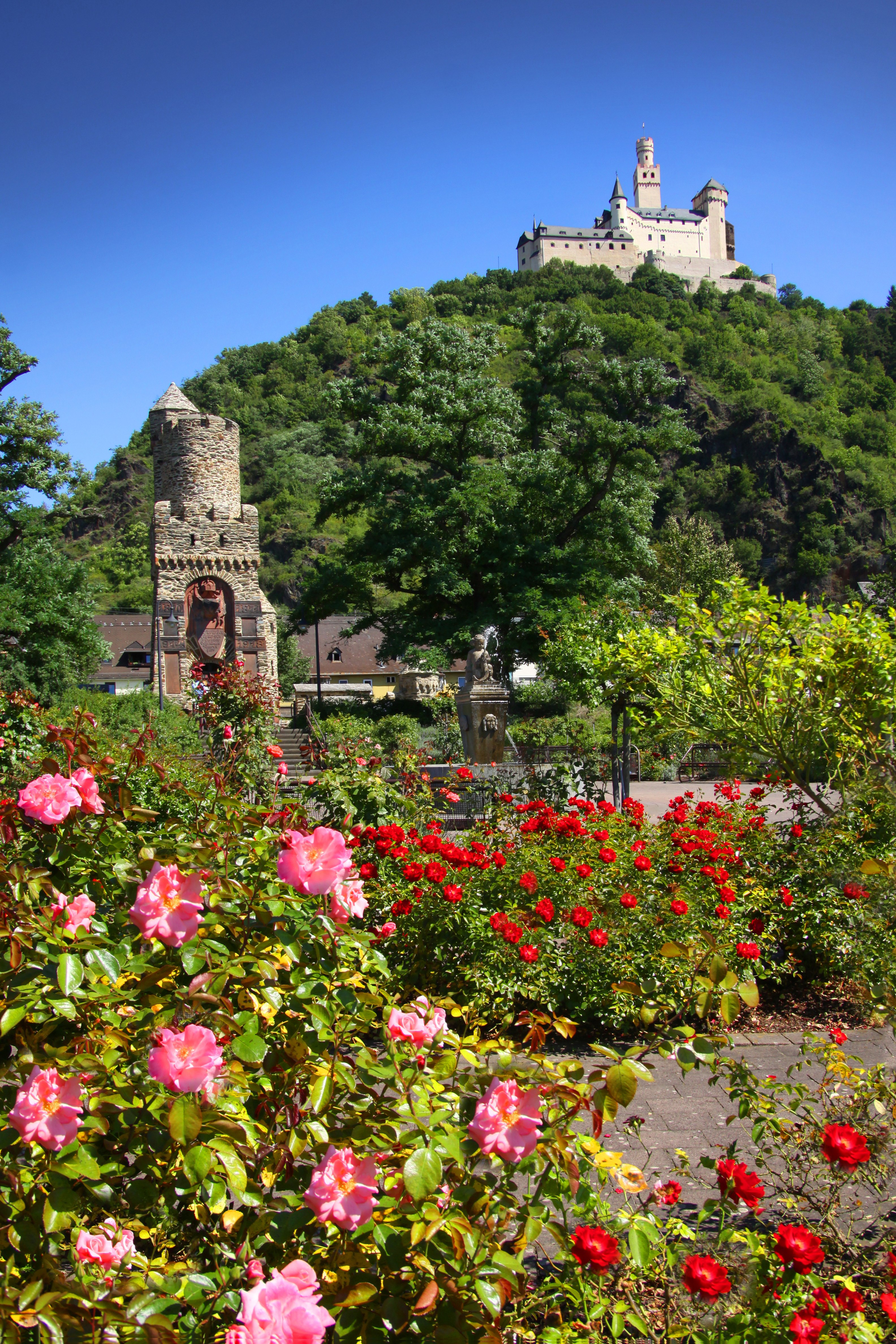 Inmitten des romantischen Rheintals lädt eine kleine Stadt zum Besuch ein. Eine Stadt mit langer Geschichte, mittelalterlichem Charakter und idyllischem Flair. Umgeben von Reben und Rosen, bewacht von der imposanten Marksburg, die hoch über den verwinkelten Altstadtgassen thront. Sie ist die einzig unzerstörte Höhenburg am Mittelrhein. Zahlreiche Reste der mittelalterlichen Stadtbefestigung sind in Braubach noch zu finden, so die historische Barbarakirche aus dem 13. Jahrhundert, deren Turm Eckbefestigung der Stadtmauer war. Sehenswert auch die Martinskapelle aus dem 11. Jahrhundert. Hier befindet sich die Ruhestätte des berühmten Kammersängers Heinrich Schlusnus (1888 – 1952), der in Braubach geboren ist. In der Altstadt liegt die Philippsburg mit ihrem romantischen Innenhof und dem Renaissancegarten. Hier beherbergt das Europäische Burgeninstitut eine der größten burgenkundlichen Bibliotheken Europas. Braubach bietet seinen Gästen Ruhe und Beschaulichkeit, ebenso wie Unterhaltung, Kultur und vielfältige Ausflugsmöglichkeiten.